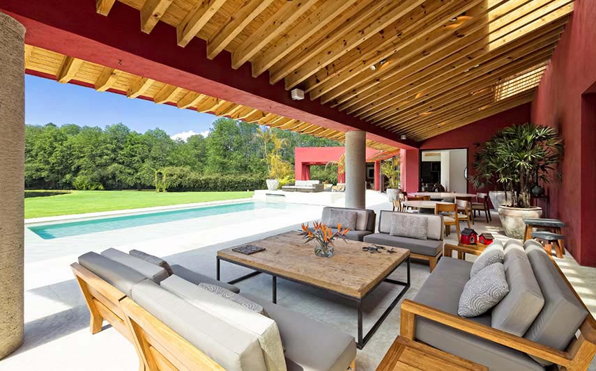 Vista la regione dal clima piacevole tutto l’anno in cui Casa Las Moras si trova, lo studio López Duplan Arquitectos, che ne cura la nuova configurazione sceglie insieme ai committenti di rendere i giardini e le terrazze della casa luoghi da abitare attentamente progettati e in costante connessione visiva con gli interni. Il nuovo giardino è arricchito da una terrazza coperta con vista sul lago centrale; questo sfocia in un corso d’acqua che attraversa e irriga il verde rigoglioso