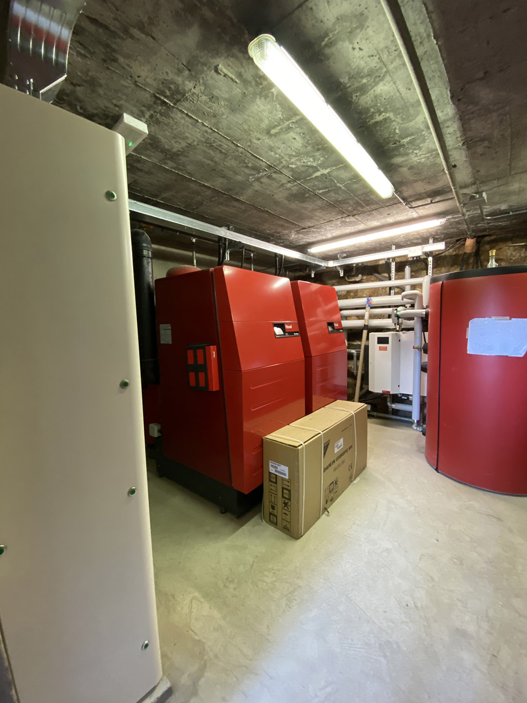 Sia le caldaie che il modulo di produzione ACS sono stati dimensionati sulla base degli effettivi fabbisogni dell’utenza. Sono stati rivisti anche i circuiti di distribuzione del vettore termico, sono stati sostituiti i tratti principali delle tubazioni fino all’ingresso dell’edificio e sono stati installati nuovi circolatori a giri variabili ad elevata efficienza energetica.