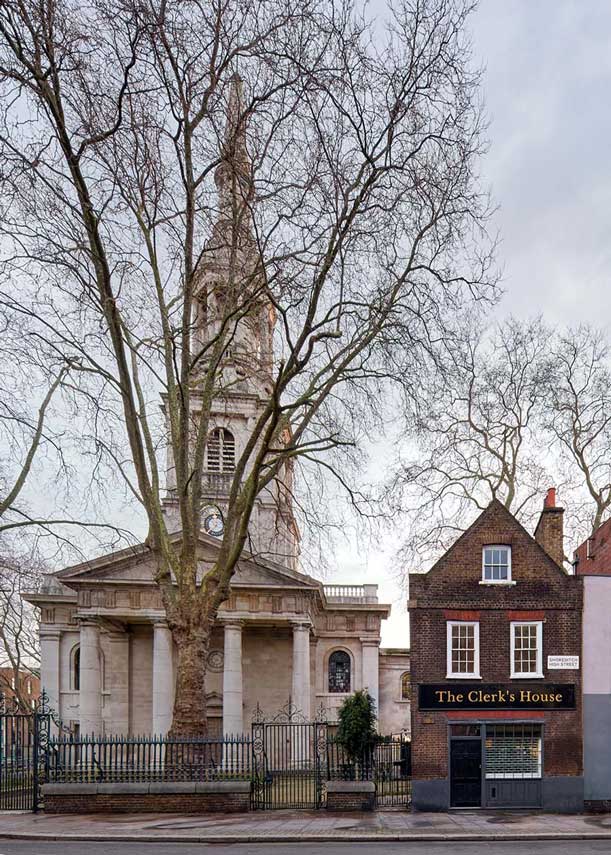 Lo studio Giles Reid Architects, già incaricato per la prima sede della galleria Emalin, si occupa del restauro di The Clerk's House. L’abitazione londinese progettata da George Dance the Elder viene costruita nel 1735 a lato della sua contemporanea St Leonard’s Church. Quella che un tempo fu la casa delle guardie del cimitero della chiesa, sembra essere la più antica costruzione ancora esistente del quartiere di Shoreditch