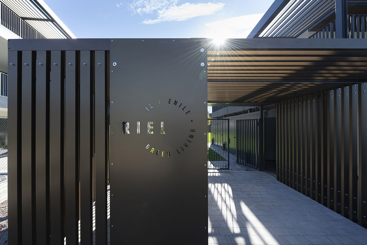 Piante verticali come querce, aceri, mirti crespi e tulipani caratterizzano lo spazio verde. Aiuole orizzontali in metallo che possono essere utilizzate come orti urbani con spezie, alberi da frutto e viti contrastano con la verticalità degli alberi. Riel – il fienile” consiste nella realizzazione di due nuovi edifici e nel rilancio di un vecchio fienile, preservando e integrando nella nuova struttura il tetto a doppia falda e le colonne portanti di quest'ultimo