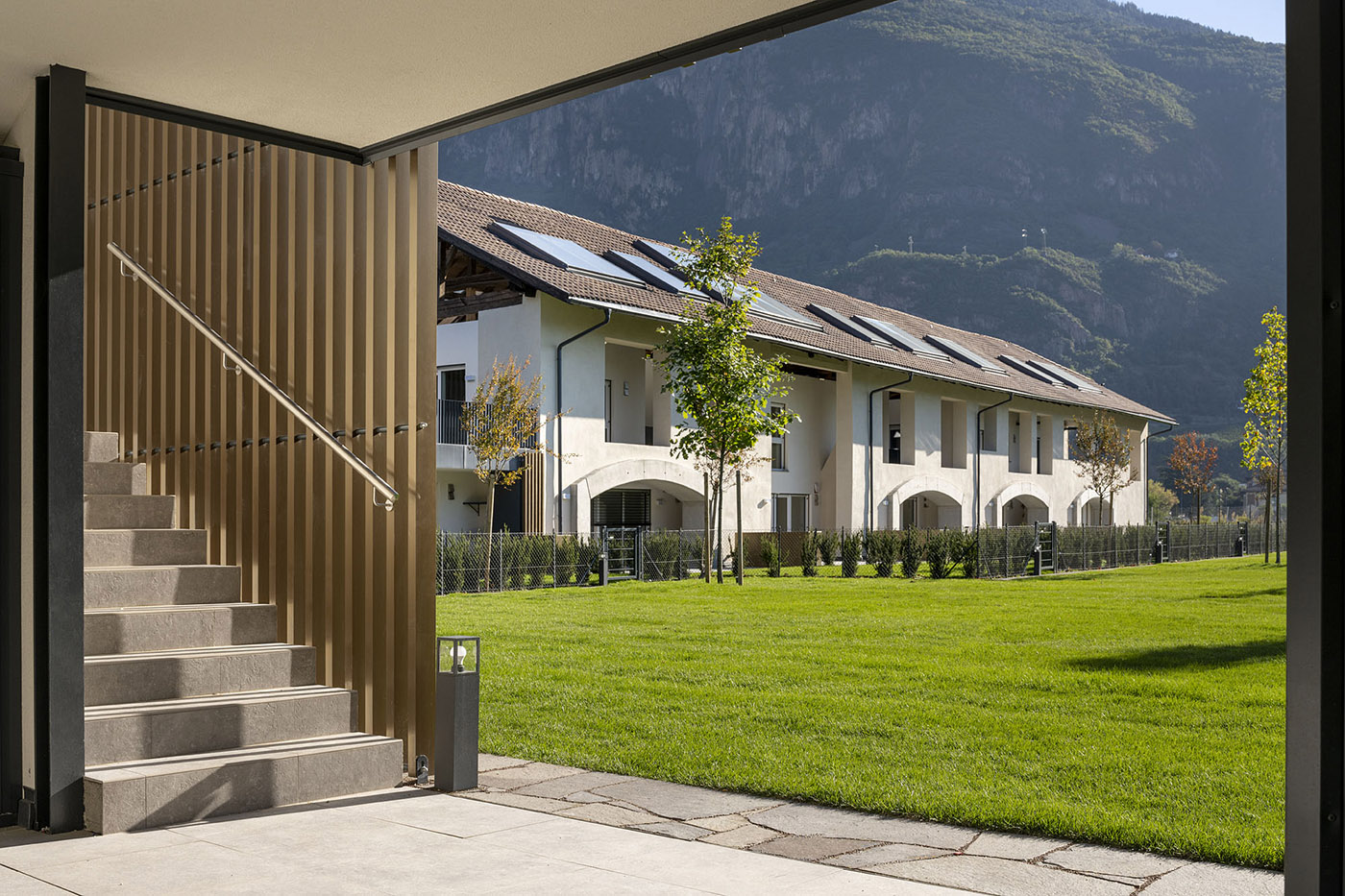Oltre all'approccio rispettoso tra vecchio e nuovo, l'intervento architettonico mira a lasciare visibile la struttura portante degli edifici. La fusione con il paesaggio circostante crea un nuovo modello residenziale dal sapore urbano in connessione con i frutteti circostanti e le Dolomiti. La riqualificazione di quest'area reinterpreta in chiave contemporanea l'interazione tra memoria storica e futuro intelligente