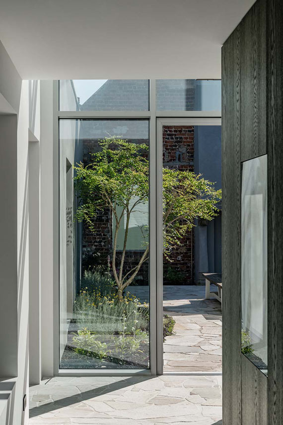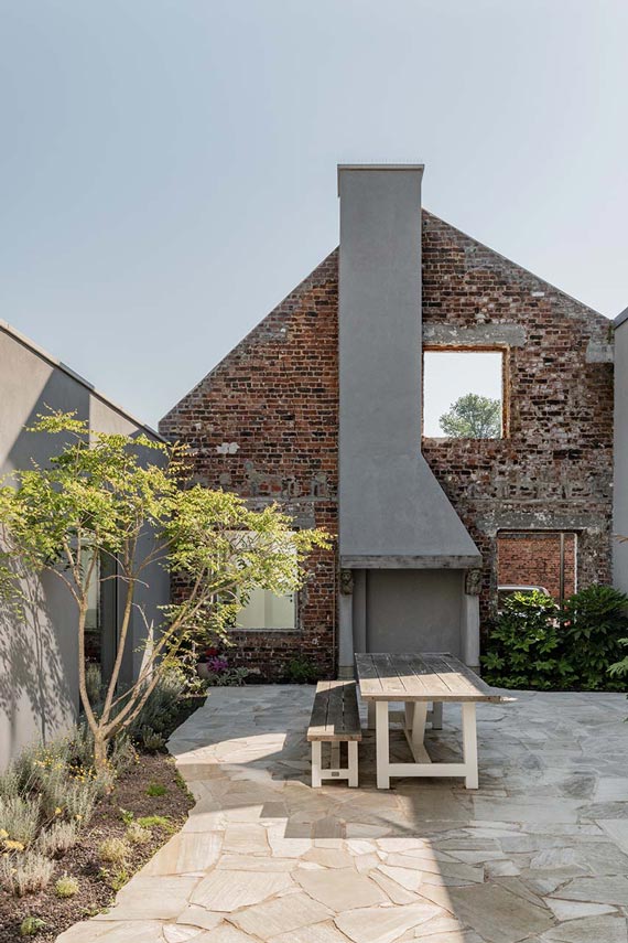 Lo studio belga Objekt Architecten viene incaricato della ristrutturazione di casa Ossel che viene terminata nel 2024. La fattoria, che sorge su un grande appezzamento di terreno, viene completamente rinnovata: mantenendone le aperture originali e il caratteristico camino il salotto viene trasformato in un patio. Il nuovo volume, costruito in aderenza alla parte posteriore del casale, è caratterizzato da grandi vetrate e dalle pareti rifinite in legno scuro sia all’interno che all’esterno
