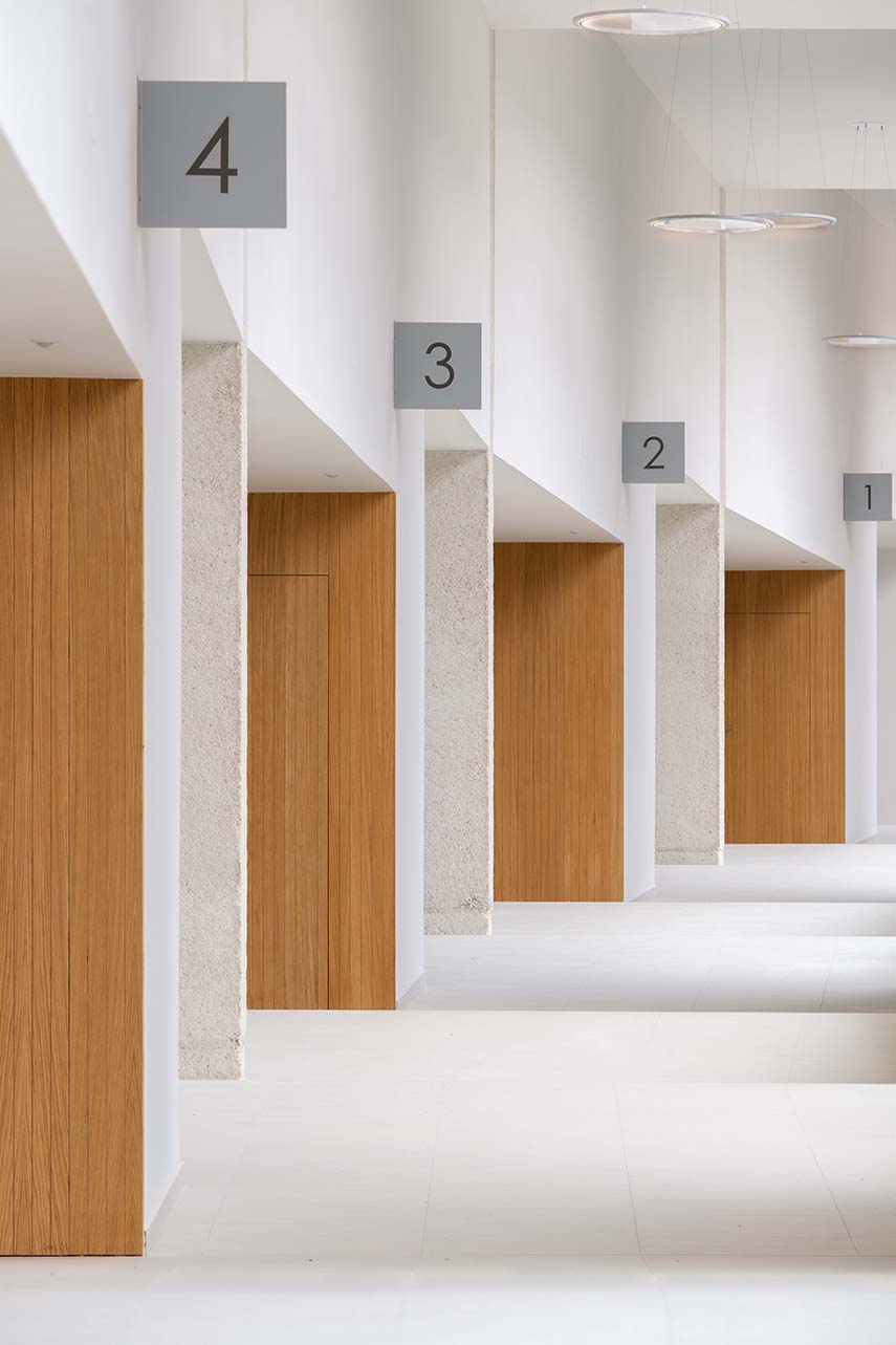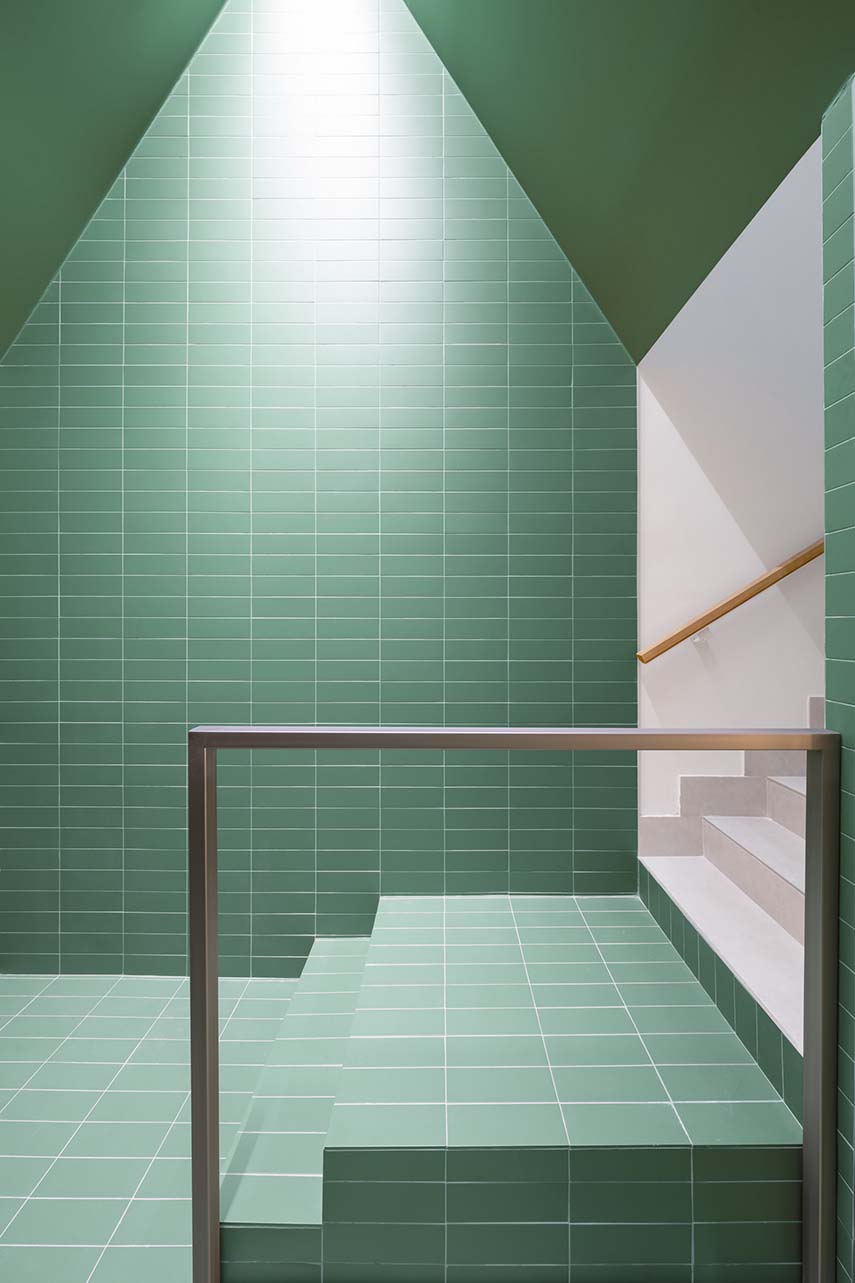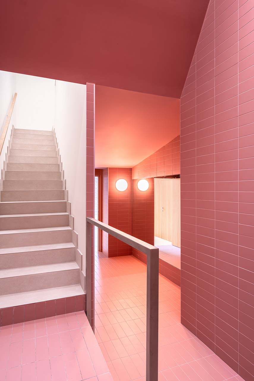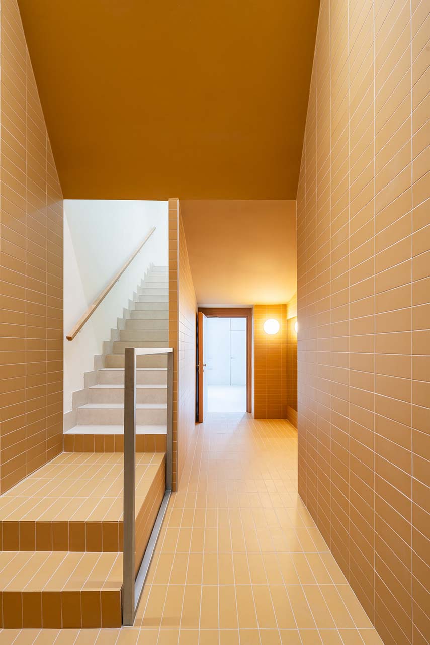 La parcella si colloca sul limite tra città e campagna, affacciata sulla Ripa de Cizur e orientata a sud. Il progetto, a cura di GVG Estudio e MOEST, nasce dalla sezione, articolando un volume che risponde alla topografia: le abitazioni da un dormitorio (rivestite in lamiera dorata), più superficiali, si dispongono sopra quelle da due dormitori (in lamiera grigia), più profonde. Questa stratificazione in contradiagonale genera un corpo compatto e sobrio verso nord e un fronte sud ricco di terrazze ampie e luminose, dove materiali e geometrie traducono il dialogo tra naturale e costruito.
