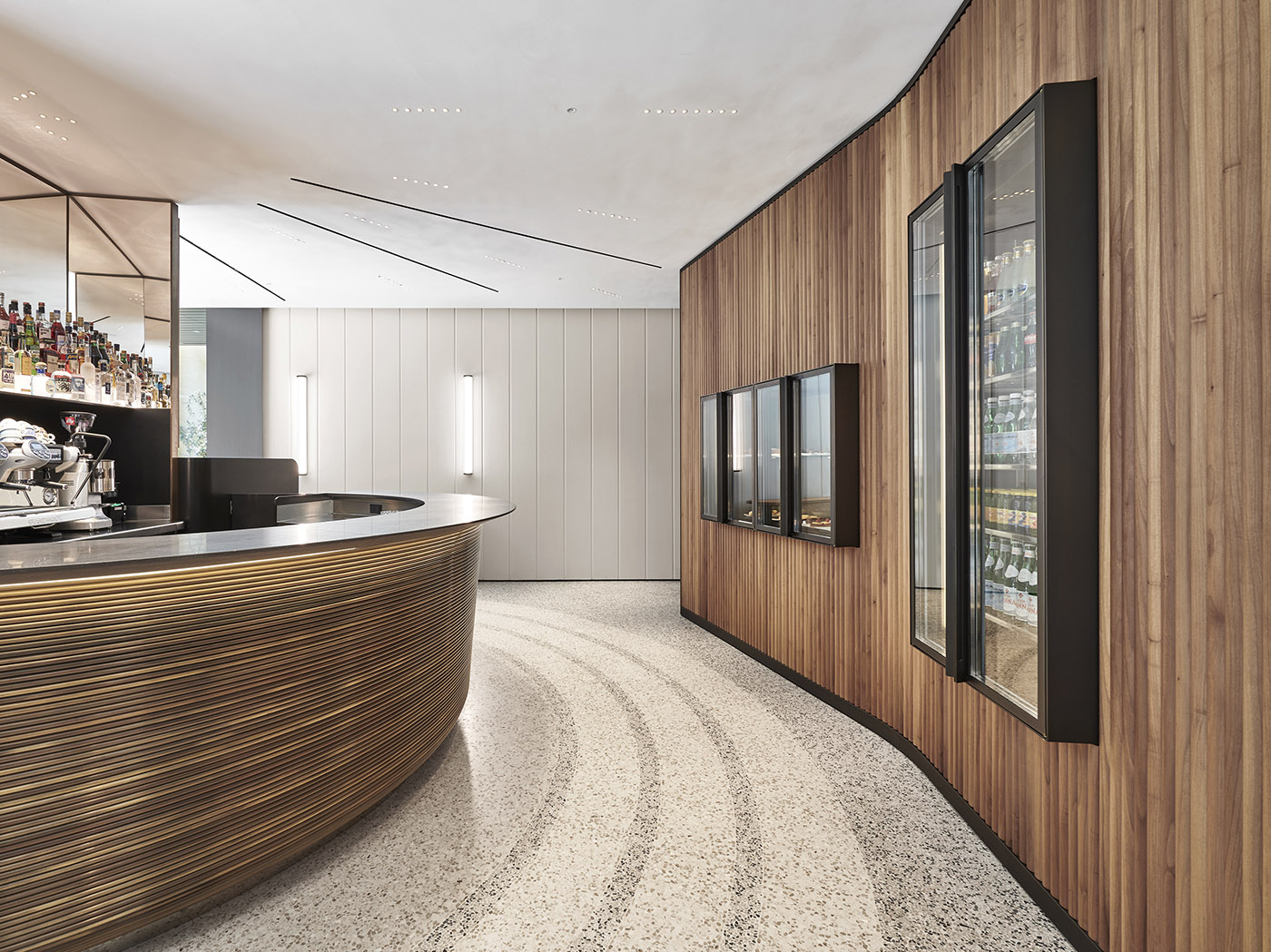 Affacciato sul verde cortile del Palazzo si trova il Caffè Bistrot, per il quale lo chef Andrea Aprea ha ridefinito i canoni della cucina popolare italiana attraverso una selezione di grandi classici. Lo spazio - di 135 m² per 22 commensali all'interno e 12 all'aperto - si rifà alla tradizione dei caffè della Milano cosmopolita e borghese del primo Novecento, per mostrare gli elementi chiave della cucina italiana, dalla colazione alla cena, con una gamma capace di assecondare il desiderio di convivialità e buon gusto in qualsiasi momento. Il design dei flussi ruota attorno ad un iconico bancone semicircolare in ottone brunito che detta la progressione dello spazio e dirige lo sguardo degli ospiti, sempre verso il verde degli esterni,che sia per un caffè veloce, un cocktail al bancone o un pasto seduti ai tavoli accanto alla finestra