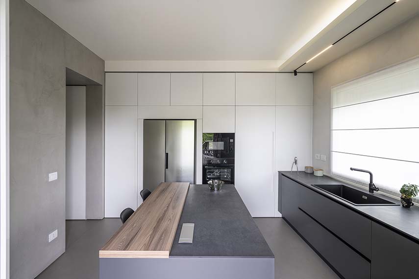 Progettare significa “porre davanti al cliente il futuro dei loro spazi di vita” dalle parole degli architetti di L2 studio, specializzati in ristrutturazione casa. Nel progetto dell’appartamento CF avviene proprio questo: dare vita agli spazi ancor prima di viverli. La nuova distribuzione dell’appartamento ruota attorno all'angolo bar, una struttura scolpita nel cemento che diventa il fulcro dell'ambiente. Non solo un gioiello estetico, ma anche altamente funzionale: dotato di una cantinetta per i vini e attrezzature per la preparazione dei cocktail, l'angolo bar è ideale per socializzare e rilassarsi, accogliendo gli ospiti nel proprio confort abitativo.