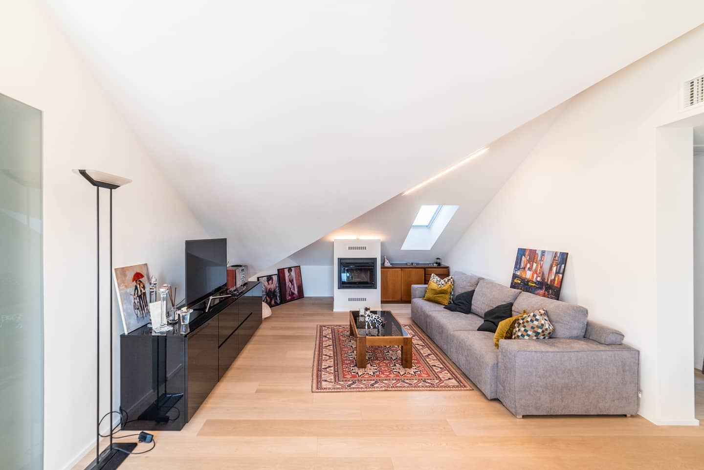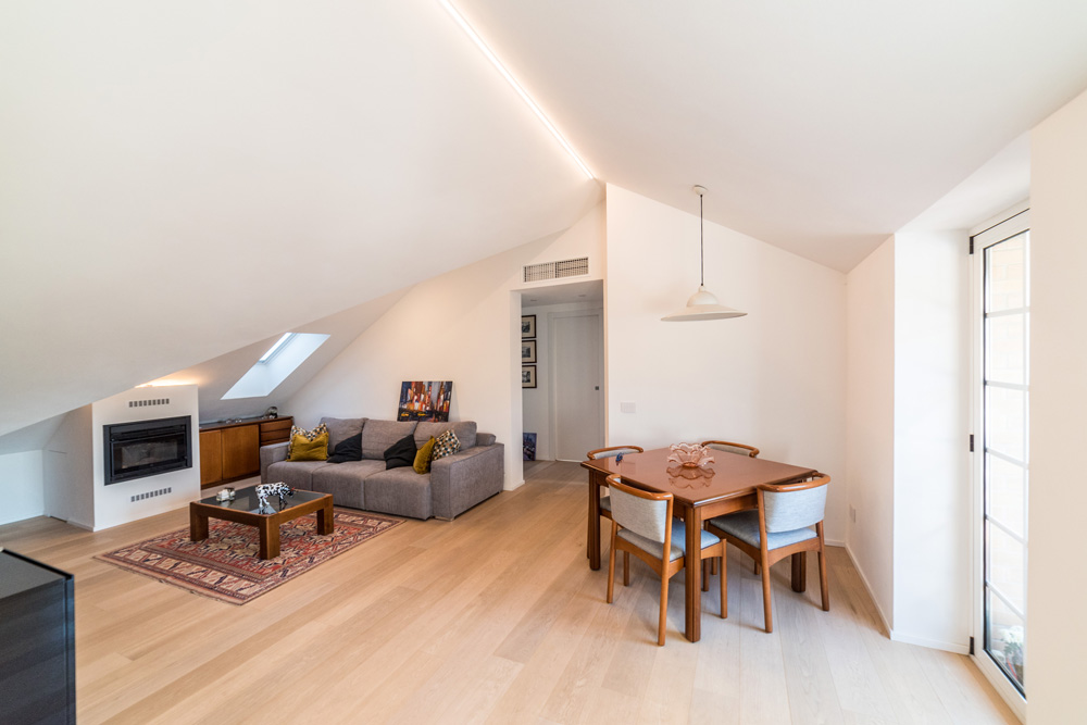 Sottotetto trasformato in spazio abitabile. Bianco e luce naturale per ampliare gli ambienti