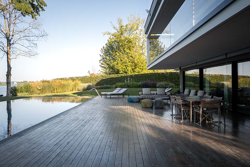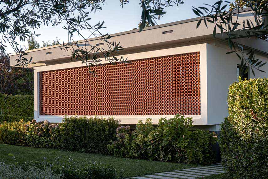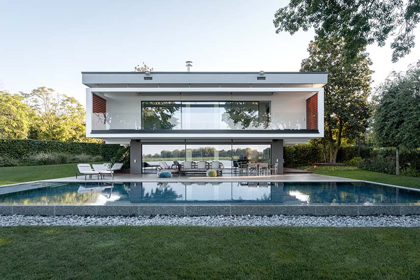 La villa unifamiliare Casa SCR costruita tra il 1964 e il 1965, è situata a Mantova, all'interno del suggestivo contesto naturale del Parco del Mincio, con una vista privilegiata sul lago Superiore. L’architettura originaria era caratterizzata da tre distinti volumi geometrici: un basamento rettangolare, un volume principale di dimensioni maggiori e un tetto sporgente, che si configurava come una piastra sospesa con ampie aperture in corrispondenza degli ingressi.