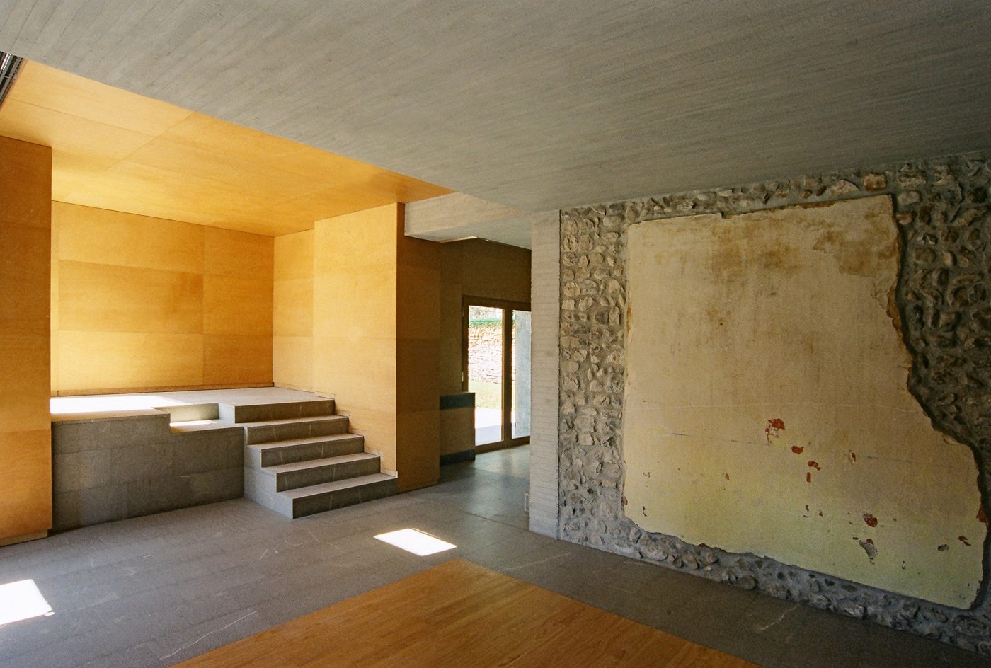 La struttura originaria - non priva di alcuni elementi di pregio quali le pareti in sassi ed il porticato ad archi - è stata considerata come un involucro al cui interno nasce un nuovo organismo, caratterizzato da un’aggregazione di volumi scatolari che, slittando tra loro a diversi livelli, creano spazi complessi