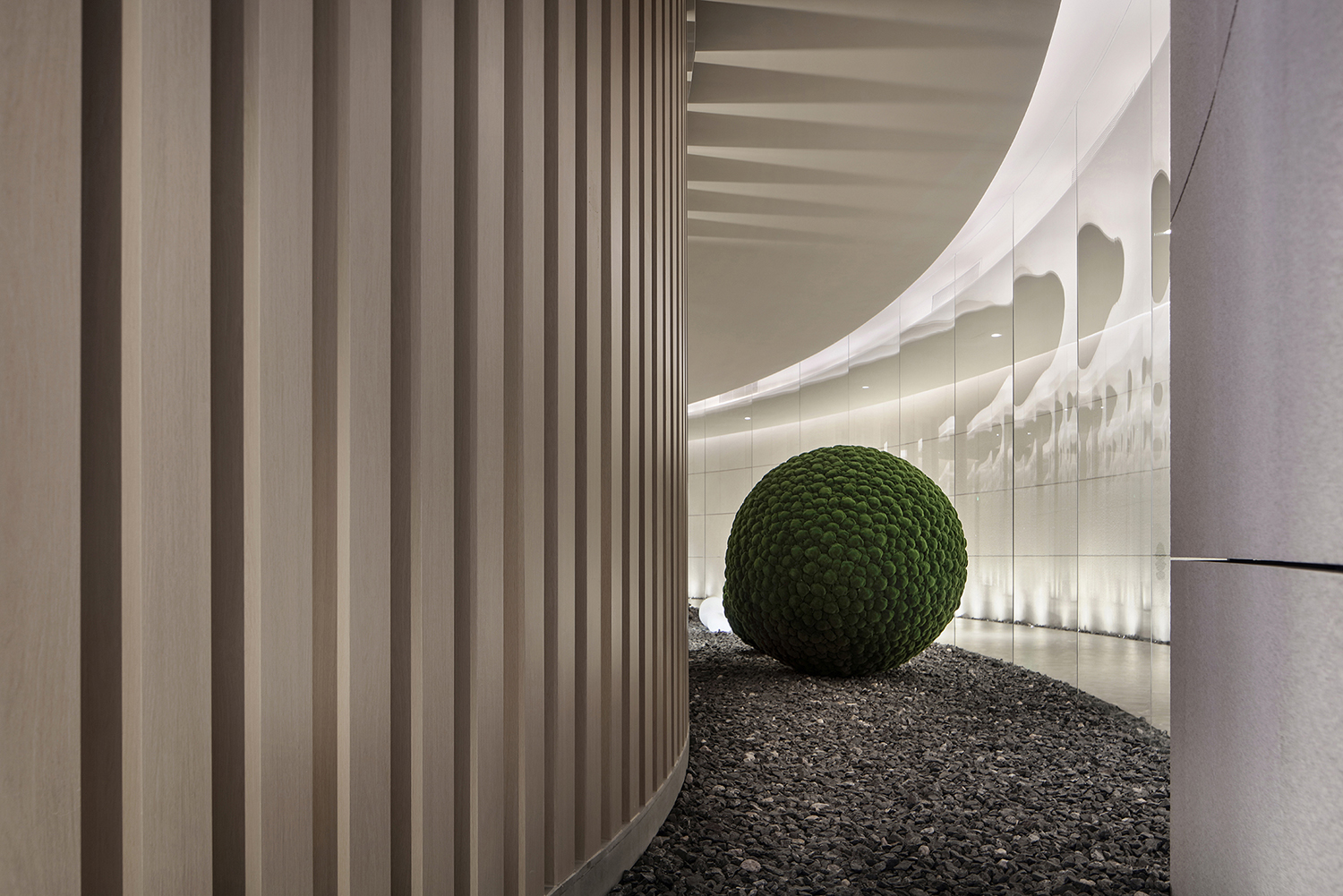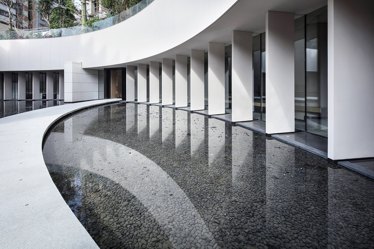Entrando nello spazio dal primo piano, i visitatori sono in grado di cogliere la vista del cortile, cielo e acqua in tempi diversi, angoli e prospettive. Tale design ha preso in prestito lo stile dei giardini classici cinesi, che è semplice e disadorno, lasciando spazio all'immaginazione