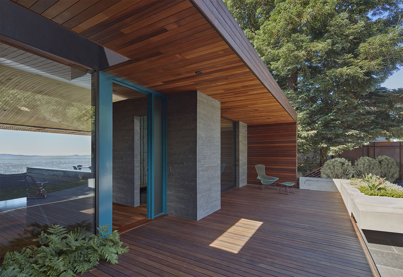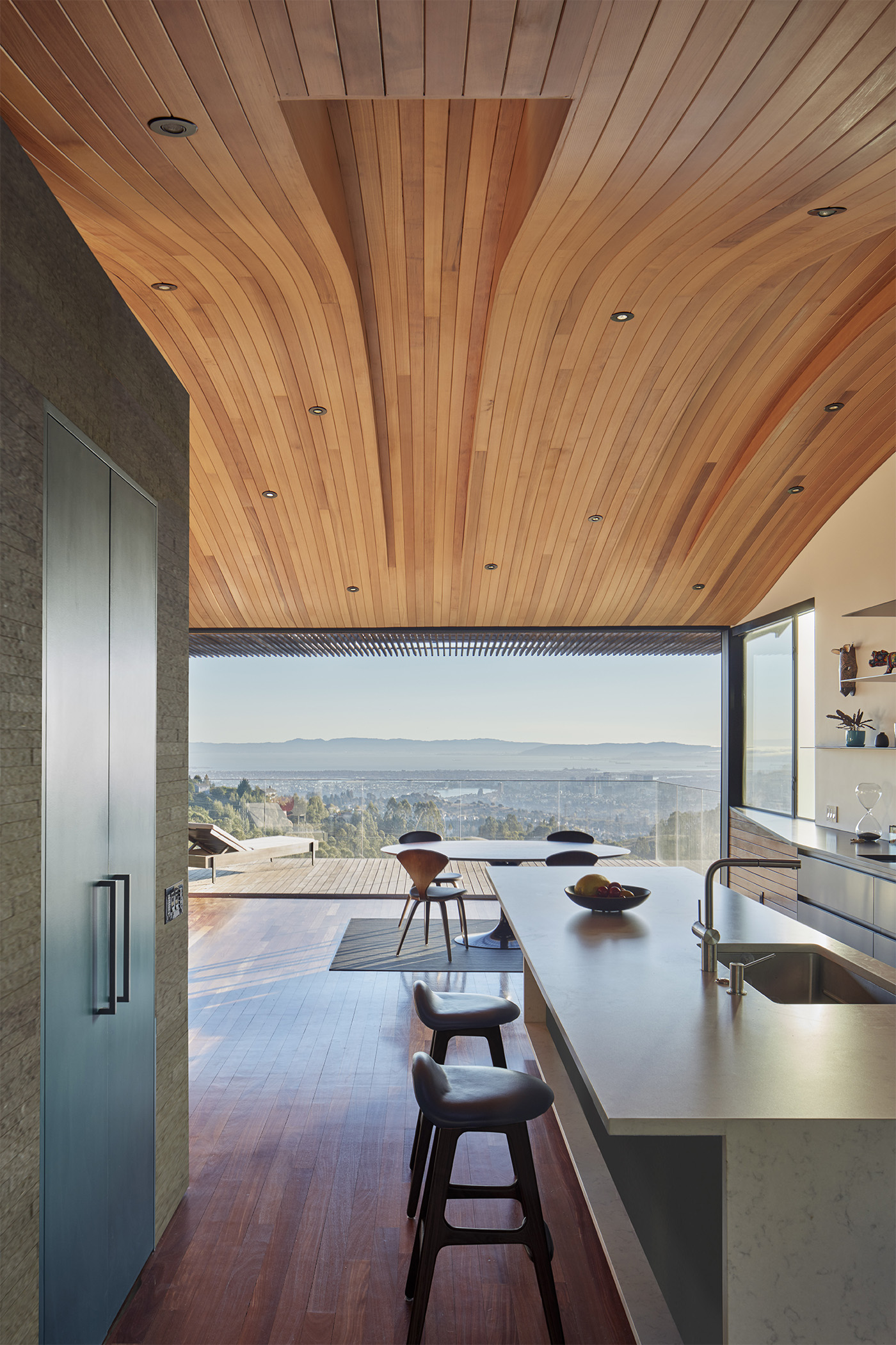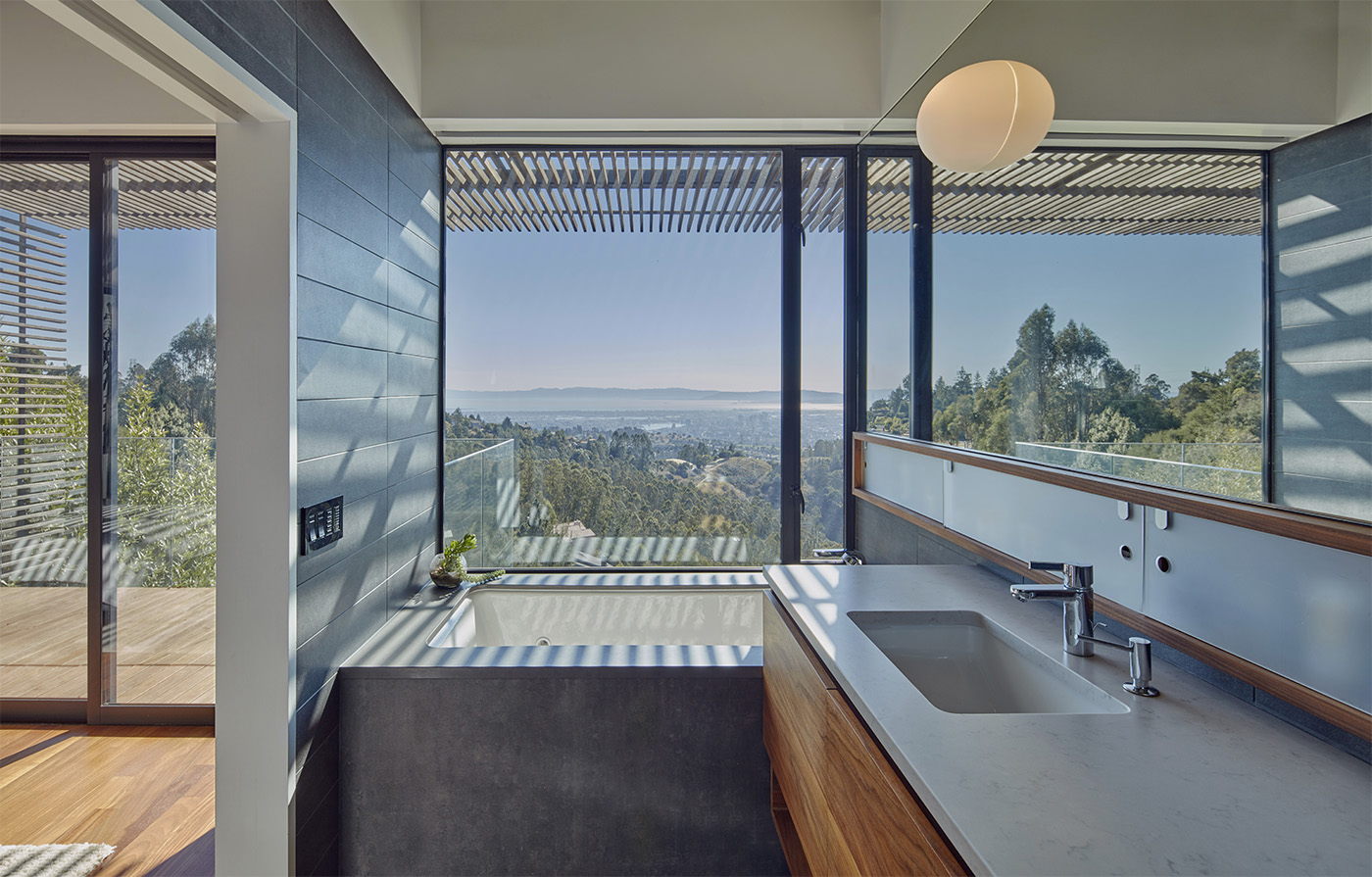 Uno dei progetti di architettura dedicati a case vista mare è questllo dello studio americano Terry & Terry Architecture che realizza una villa protesa verso la baia sud occidentale ed il Golden Gate, su richiesta di una giovane famiglia che desiderava una casa a pianta aperta che abbracciasse la vista della baia e una connessione con il giardino esistente.