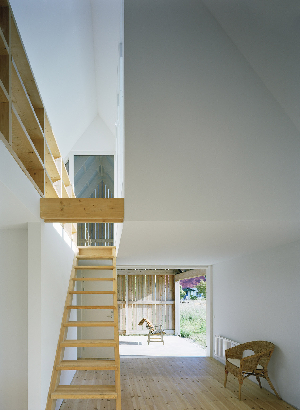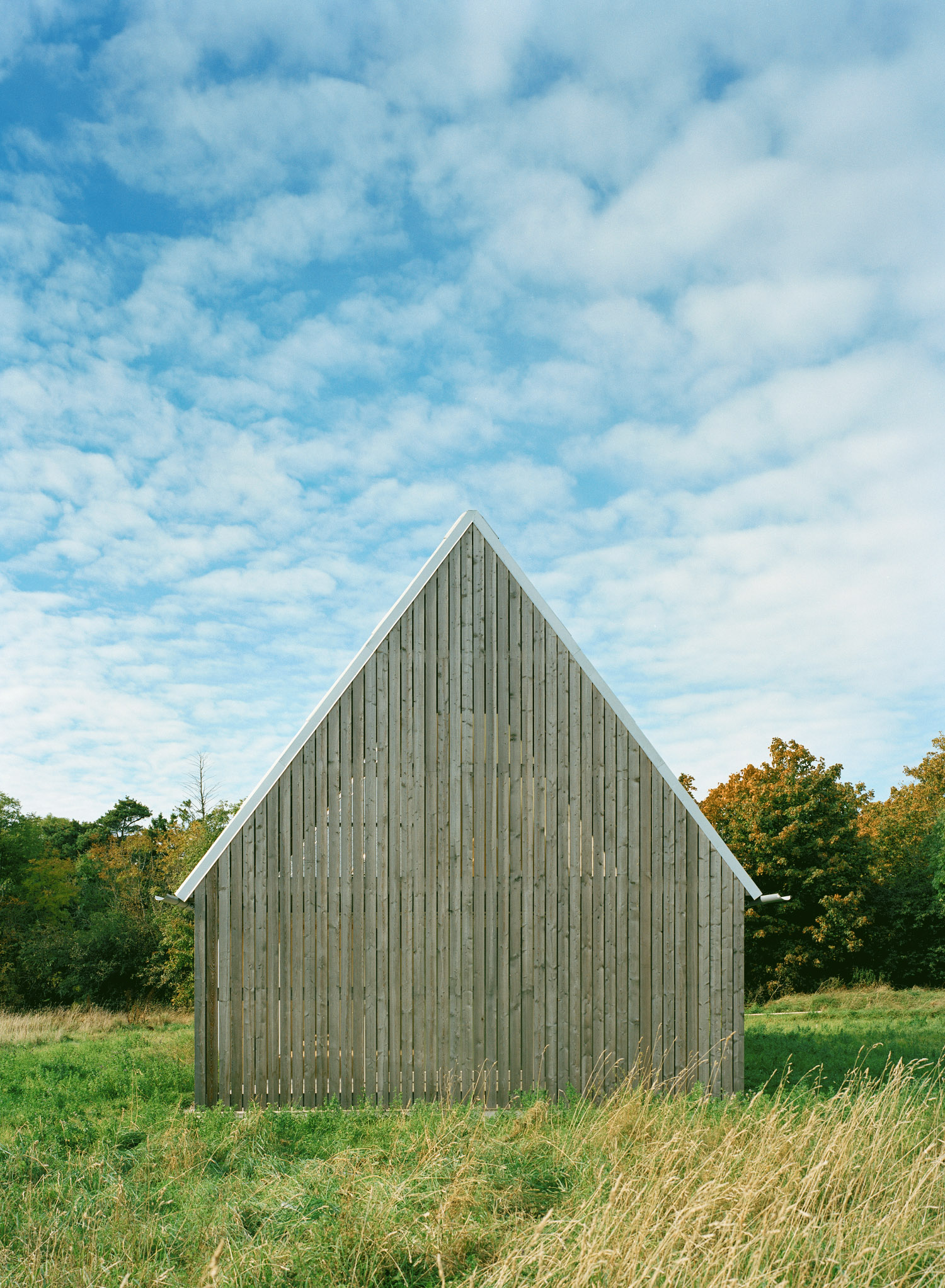 L'edificio, progettato da LLP Arkitektkontor, richiama come simili progetti di architettura della zone, nelle forme i tradizionali fienili del luogo, aperto sullo spazio esterno e con balcone vista mare. In generale si presenta molto permeabile, trasparente da un lato all'altro. Il soggiorno si affaccia sull'esterno, aprendosi sul paesaggio circostante. I campi attorno all'abitazione vengono lavorati.