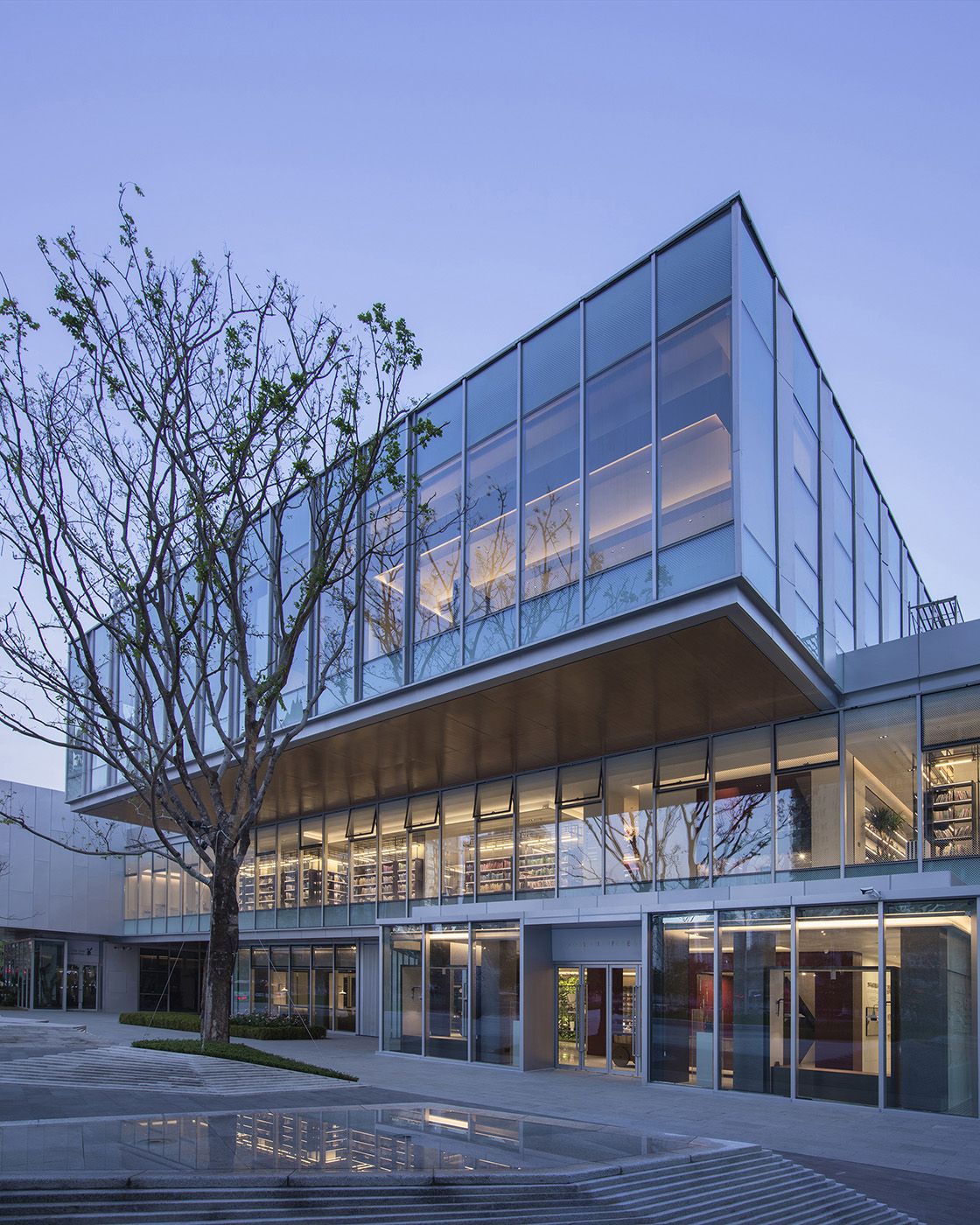 Al primo piano, si trova una caffetteria che collega lo spazio interno con le attività di strada. Dietro il bancone uno strato di libri e uno strato di vegetazione sono intervallati in una foresta in miniatura, rompendo l'immagine stereotipata di una caffetteria o una biblioteca