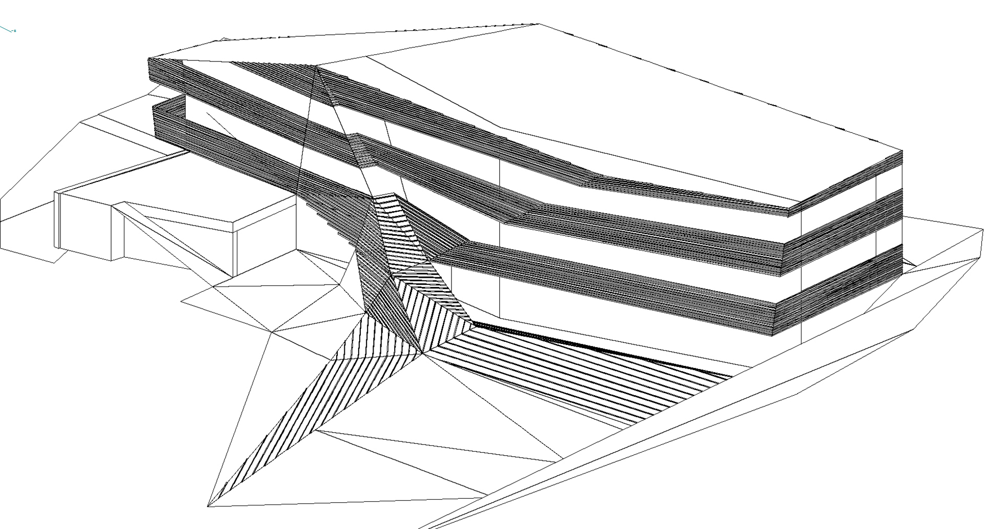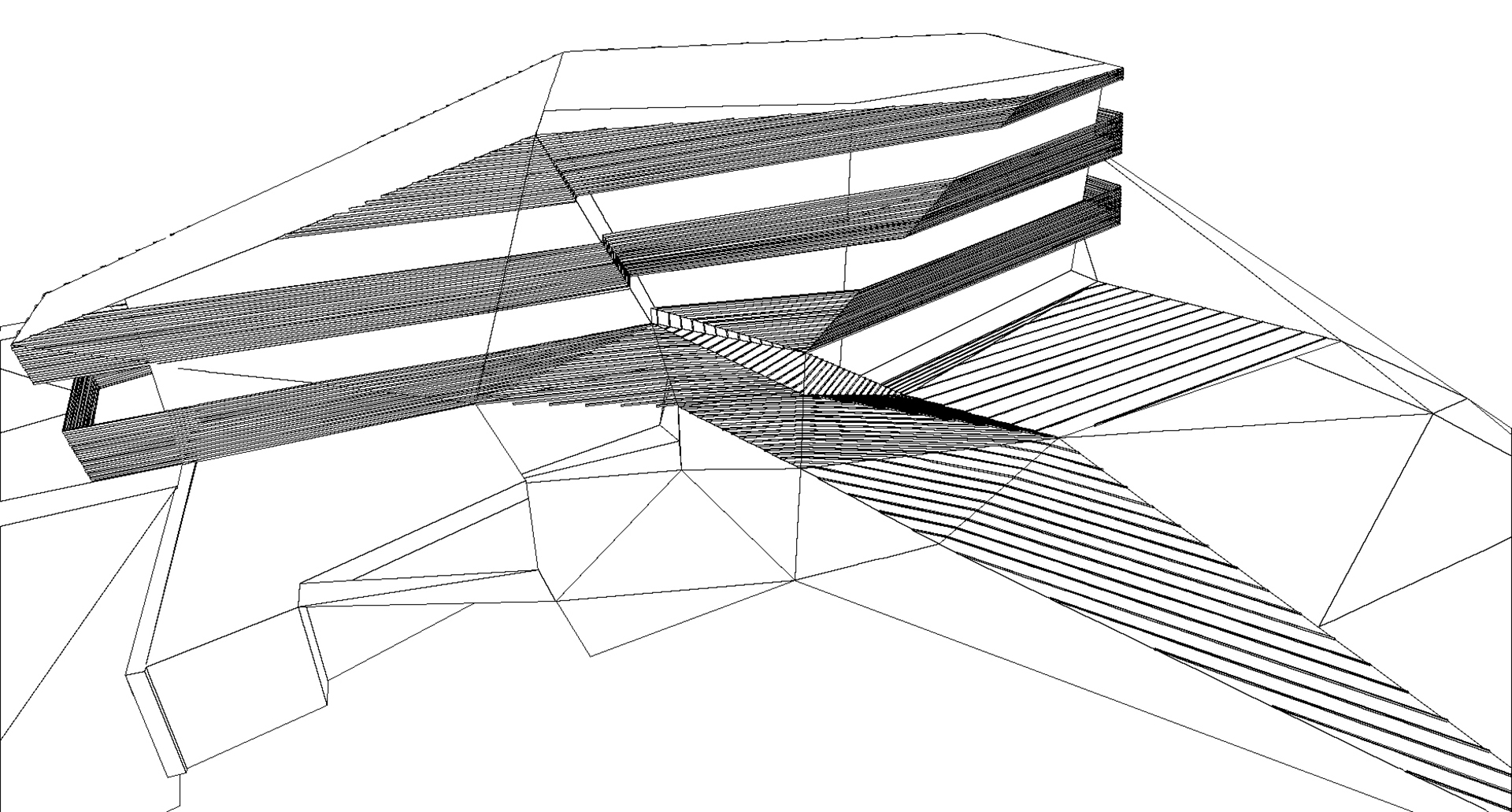 Dall'applicare la logica di mappatura topografica, cioè l'indicizzazione delle sezioni orizzontali come linee continue, il volume è formata come una serie di strati: un'entità artificiale in un dialogo con il suo ambiente naturale