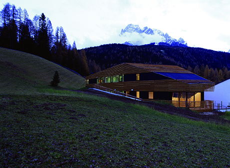 Situato su un ripido pendio nelle Dolomiti italiane, questo edificio di recente costruzione è stato sviluppato come una topografia indicizzato e organizzata da una serie di strisce di legno e la sequenza seriale di unità abitative ad esso perpendicolare a flusso libero