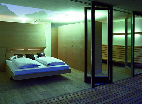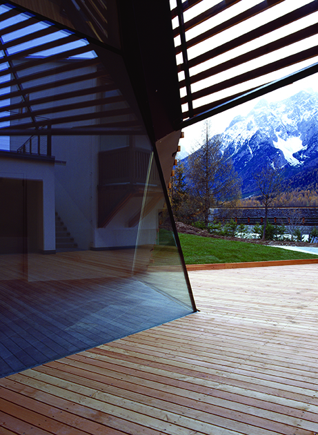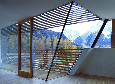 Hotel sulle Dolomiti. I Confini in legno mescolati tra interno ed esterno