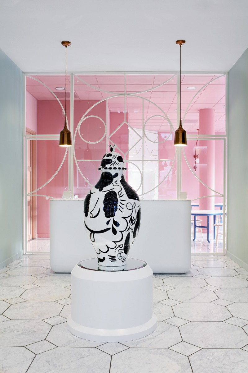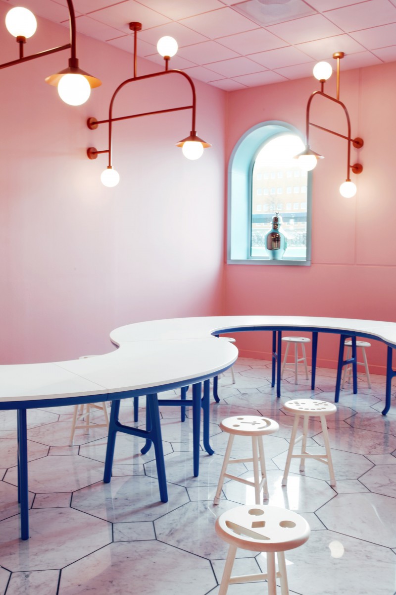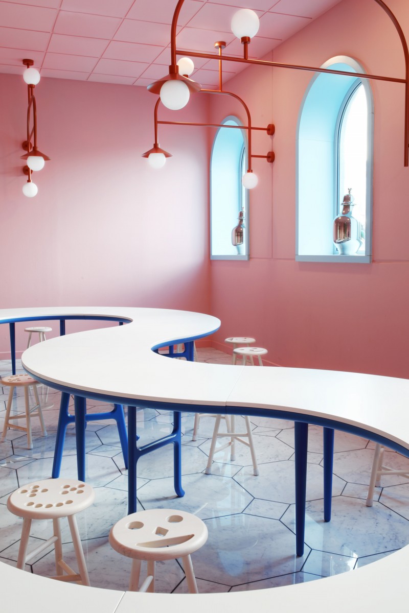 Lo spazio invita alla scoperta, compost da armadi e cassetti, un luogo in cui creare opere d’arte. Il design presenta riferimenti alla giungla, con motivi simili a maschere e una grande panca da lavoro che sembra un serpente. Questo è il posto per essere creativi e per esplorare tutti i tipi di materiali