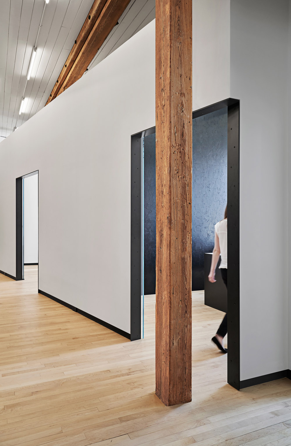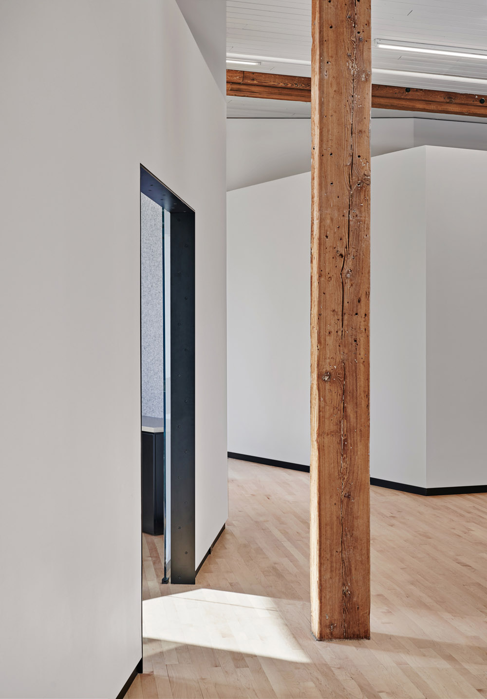 Le pareti bianche riflettono la luce e assorbono le ombre. Gli spazi che hanno bisogno più di privacy sono situati in punti più appartati. In alcuni casi, nei nuovi muri vengono ritagliate delle aperture, permettendo ai partner e ai loro team di supporto di lavorare in maniera diretta
