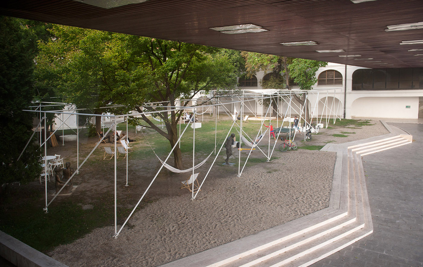 Il padiglione ha assunto molte funzioni; è stato un caffè, un giardino, una sala di lettura, un parco giochi, uno spazio per concerti, un teatro e uno spazio espositivo. Questo progetto ha portato alla creazione di uno spazio esperienziale per vivere l'estate su un'amaca, per fare campeggio in galleria, affrontare confronti spontanei tra culture, laboratori per bambini, mercati, ma anche semplicemente dormire sotto gli alberi