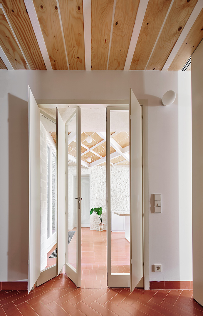 Lo Studio unparelld’arquitectes realizza l’ampliamento di questa residenza per creare tre abitazioni dagli spazi ampi e luminosi grazie ai tre livelli di terrazze. I materiali dei piani orizzontali, pavimento e soffitto, identificano lo spazio in contrasto con il bianco materico delle pareti
