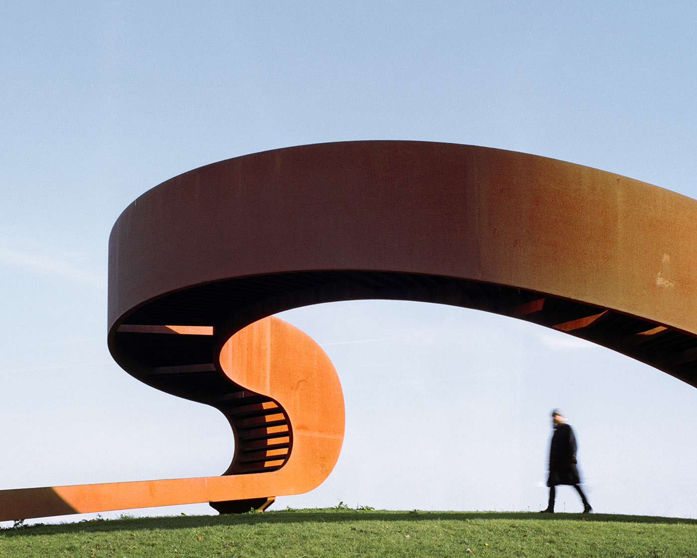 Il movimento continuo del sentiero proposto richiama i dintorni infrastrutturali della strada e del binario del tram. Ma, a differenza della fermata del tram, che rappresenta l'inizio o la fine di un viaggio, il percorso della scala di The elastic perspective è apparentemente infinito