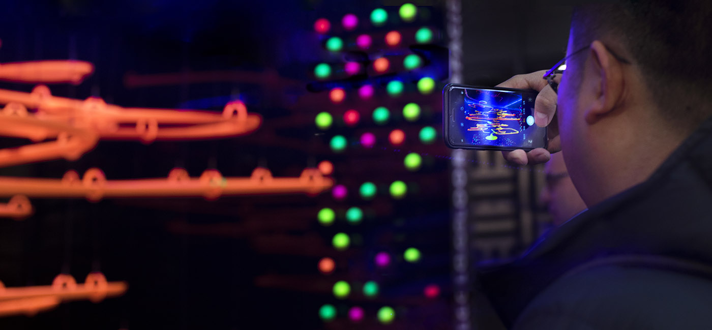 L'installazione si compone di tre elementi principali: sfere, tubi metallici e pavimento forato. Le sfere che rappresentano i filati sono colorate con fosforo. Per far rotolare le sfere sono stati creati dei tubi modulari in metallo progettati per creare due percorsi alternativi, questi tubi sono appesi al soffitto, raggiungendo il suolo in un percorso a spirale