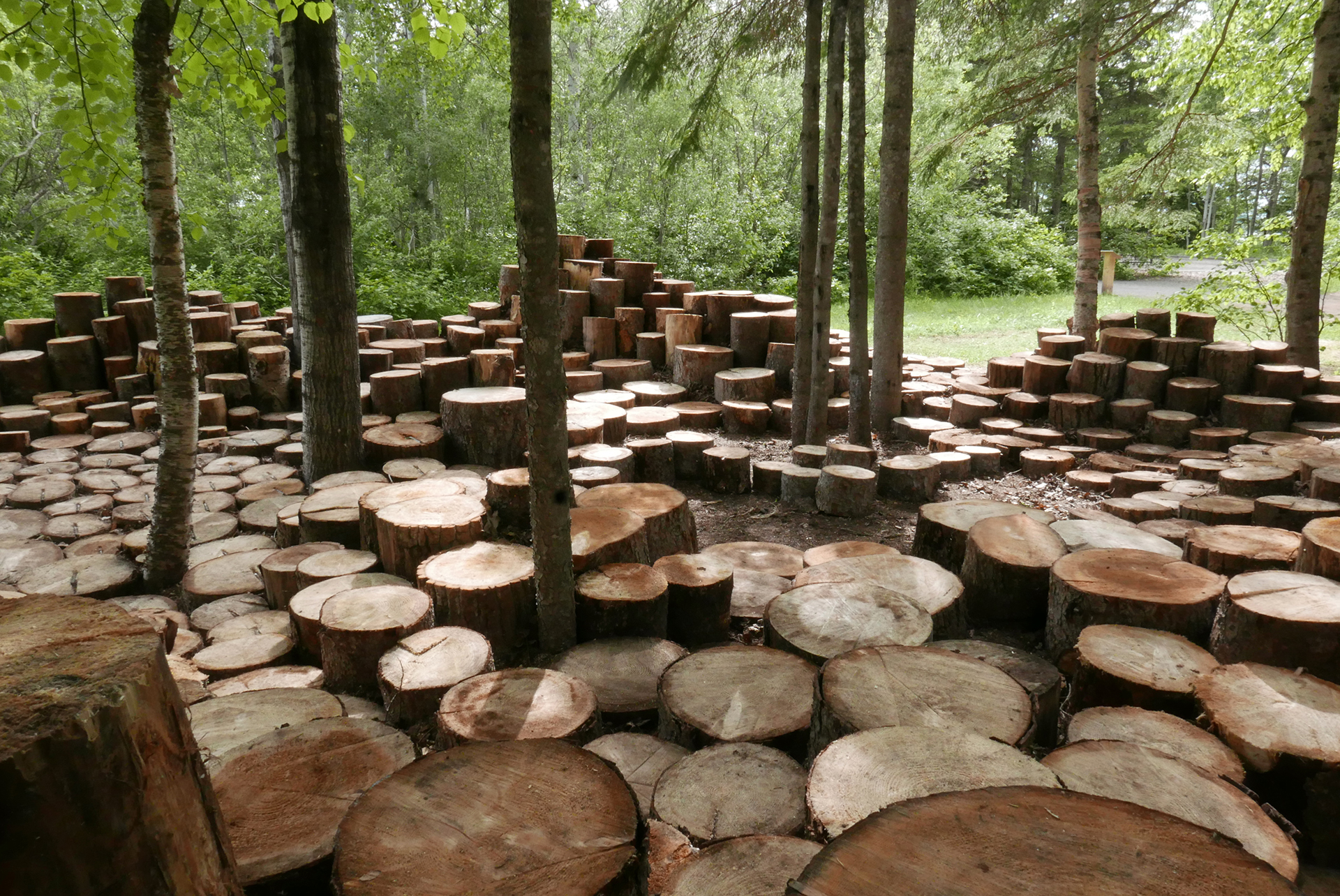 L'installazione si ispira alle cataste di legno raccolte dopo il disboscamento che sono qui messe in scena per proporre al deambulatore una sosta ricreativa: un'eco al ciclo della foresta e all'impronta dell'uomo sul suo ambiente. Si iscrive volontariamente in un luogo naturale in cui lascia un luogo di scelta. Gli alberi estendono la struttura in alcuni punti e le felci finiscono per farsi strada tra i tronchi