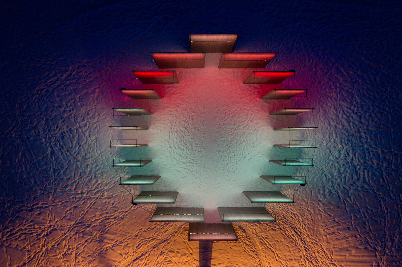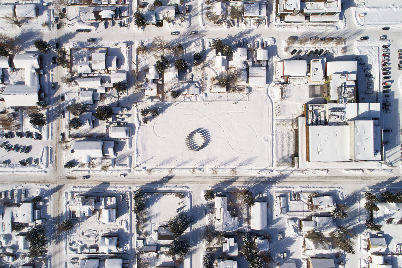 L'installazione è composta da una serie di pannelli in legno lamellare incrociato che variano in larghezza tra 7-a-12 piedi, disposti in modo circolare su una circonferenza di 52 piedi di diametro. I pannelli, altri 13,3 piedi, invece di essere posizionati a raggio, sono paralleli tra loro; gli spazi che si vengono a creare da questa disposizione invitano all'esplorazione. Da lontano, la composizione riconosce l’ambiente montuoso che la circonda mentre coinvolge i passanti e funge da contrappunto giocoso al suo ambiente naturale. La sua forma è derivata dai simboli del placemaking della montagna, così come dai punti di riferimento iconici come il West Buttress del Grand Teton