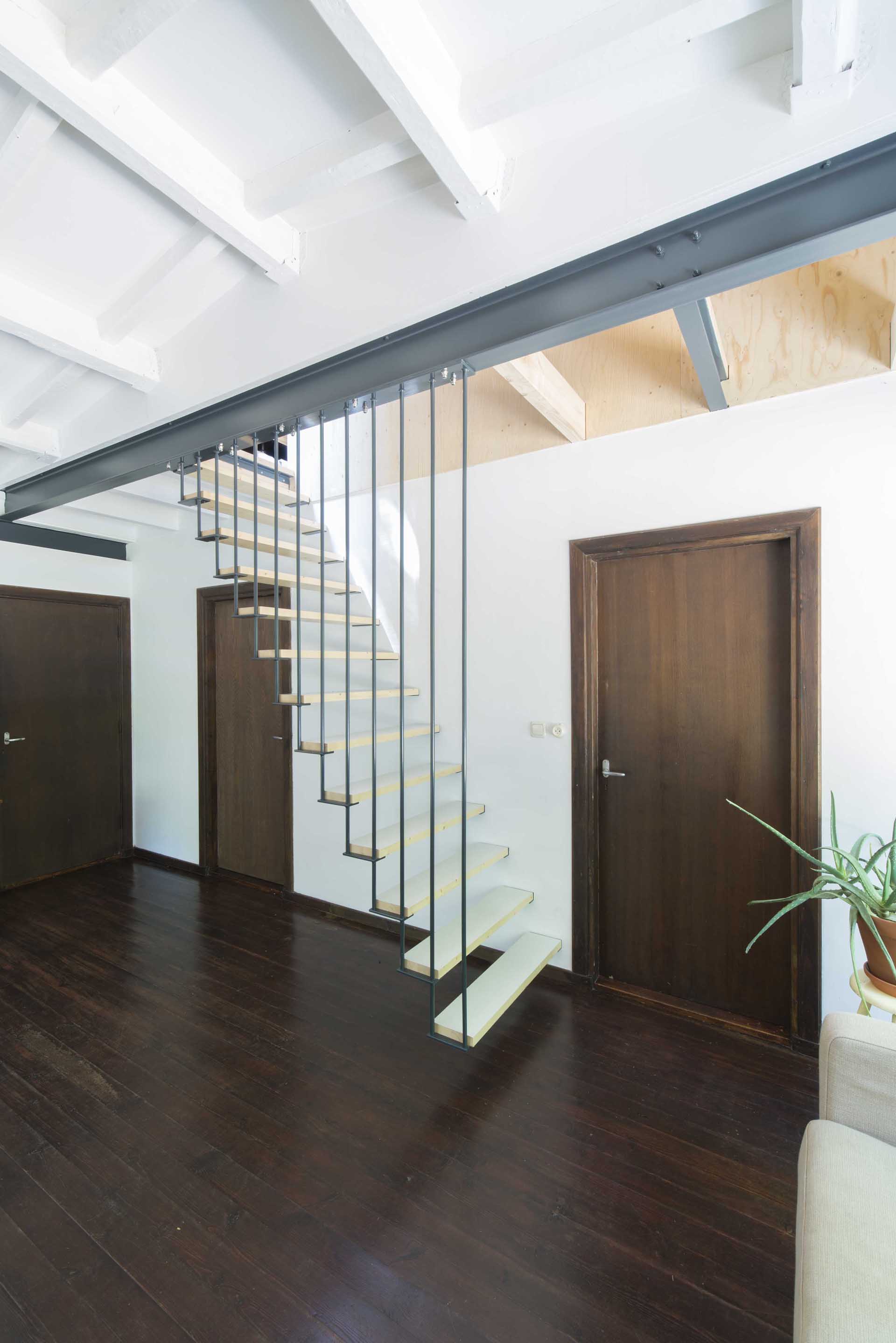 L'ampliamento è situato all'interno delle foglie e si percepisce come una casa sull'albero appartata. Il design si adatta alle restrizioni indicate dal comune riguardante l'altezza massima dei tetti spioventi. La casa esistente è stata ristrutturata seguendo i principi di architettura sostenibile basata sulla piena autarchia