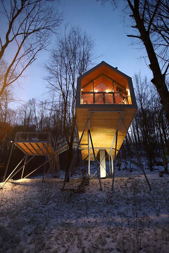 I progetti di architettura dello studio Baumraum sono scenografiche e spettacolari costruzioni sugli alberi. Il Treehouse Hotel Trifels non è da meno e va ad ampliare l’offerta alberghiera del Jugendstil Trifels Hotel, una struttura esistente in stile liberty punto di partenza per splendide escursioni. Nello stesso stile visionario, tecnologico e insieme naturale, viene realizzato anche lo Studio Ovale per le conferenze e i seminari al Jugendstil