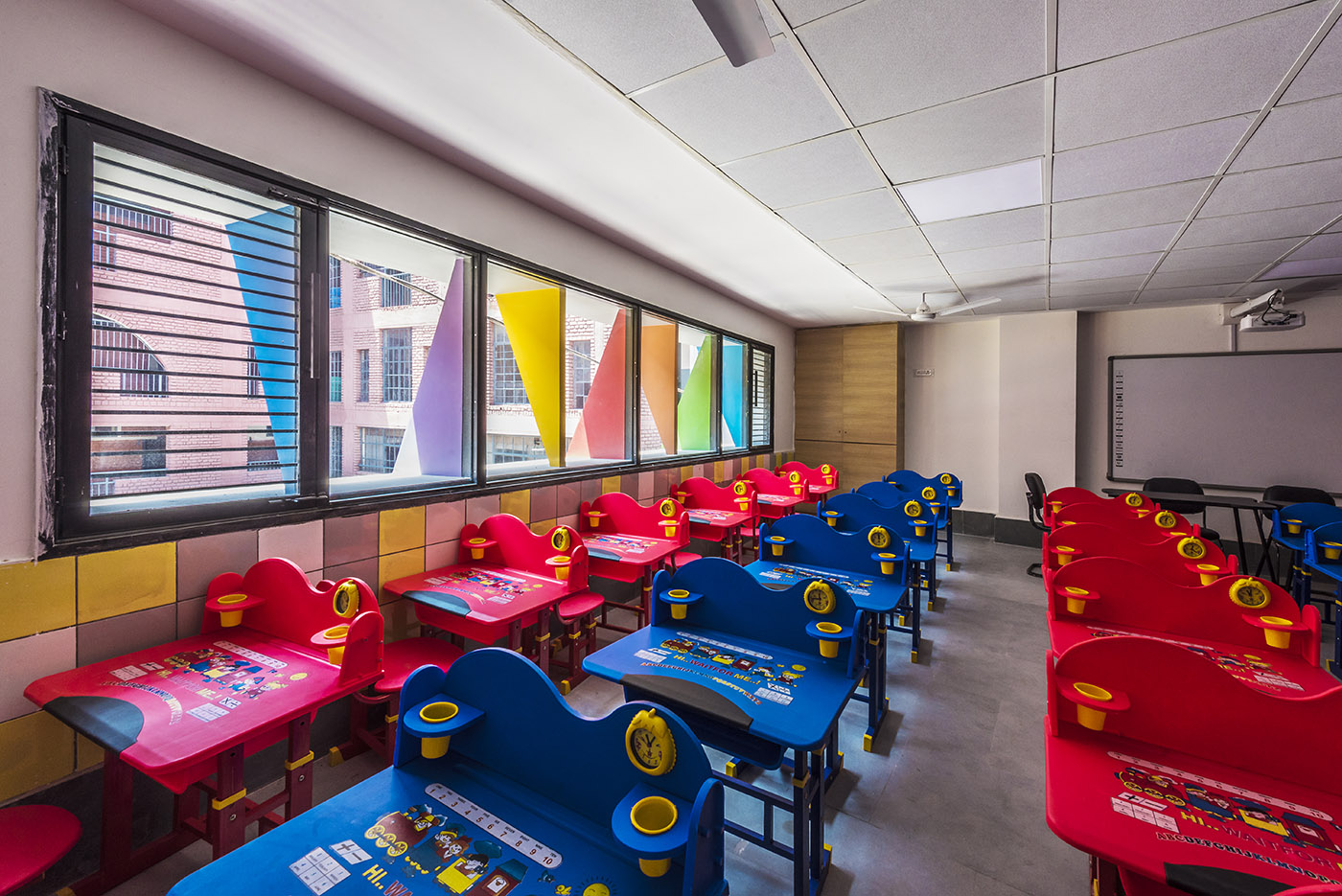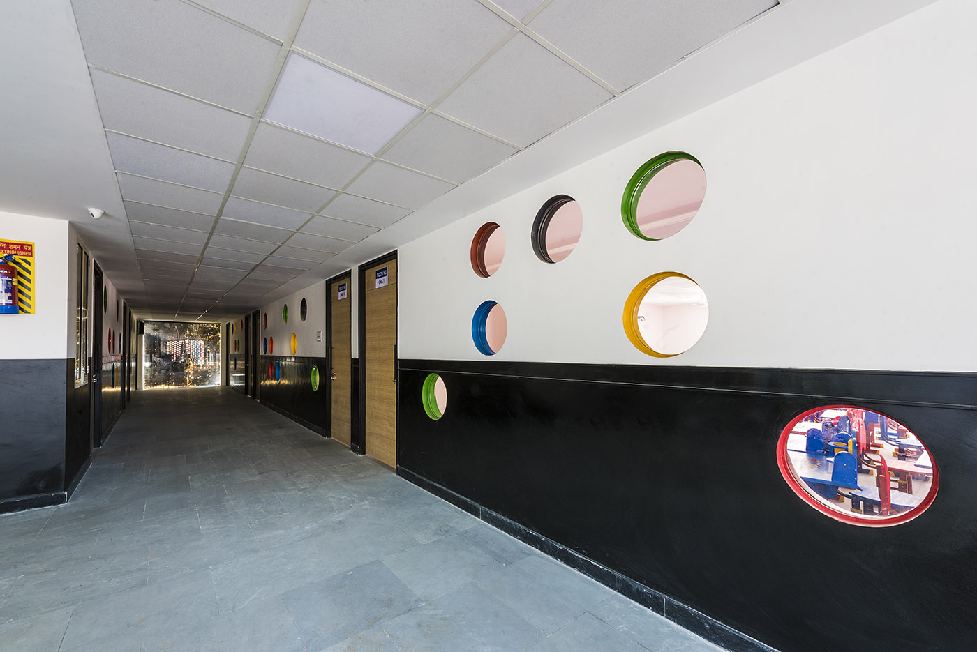I corridoi sono stati progettati in modo lineare collegando tutte le aule contemporaneamente e sono spazi dove i bambini possono giocare e apprendere divertendosi in modo interattivo grazie alle pareti- lavagna per scarabocchiare, disegnare o scrivere. Il corridoio riceve l'illuminazione naturale e la ventilazione attraverso il muro Jali in mattoni che si trova alla fine dello stesso.