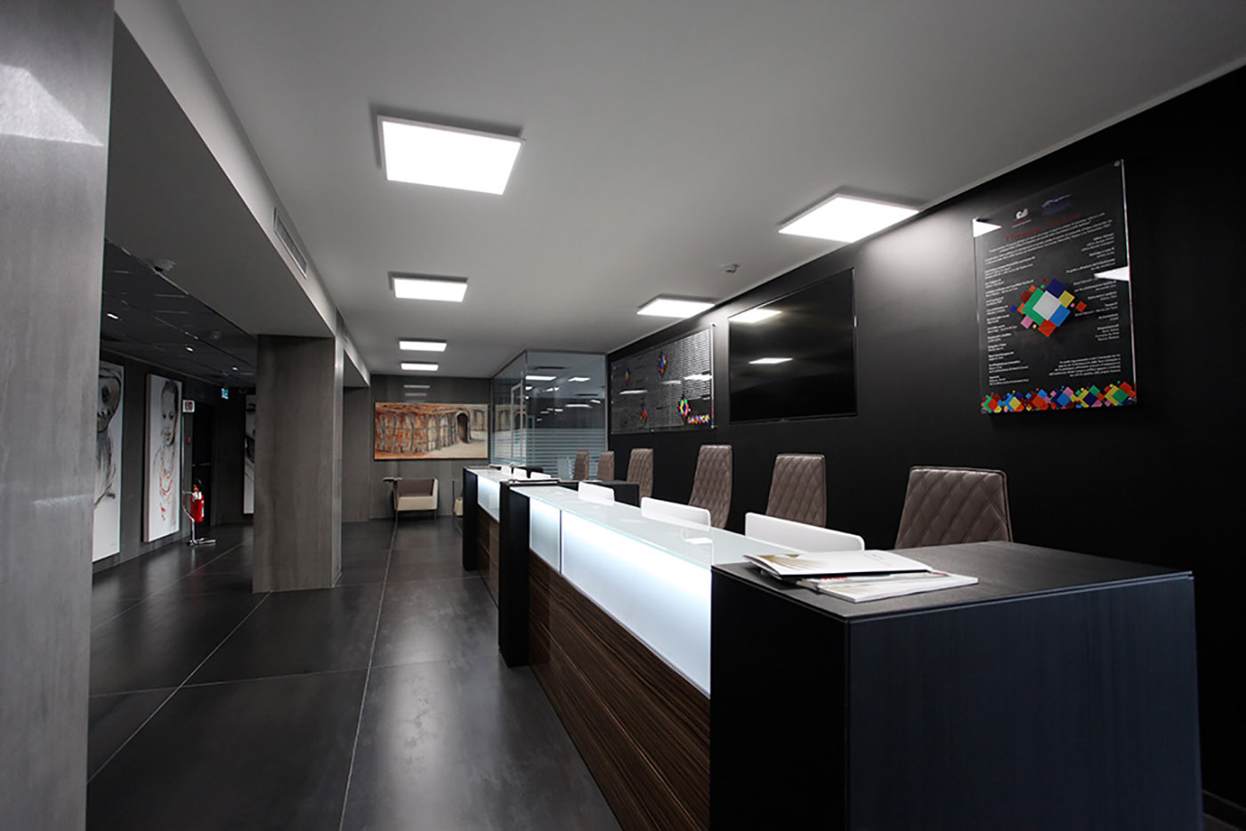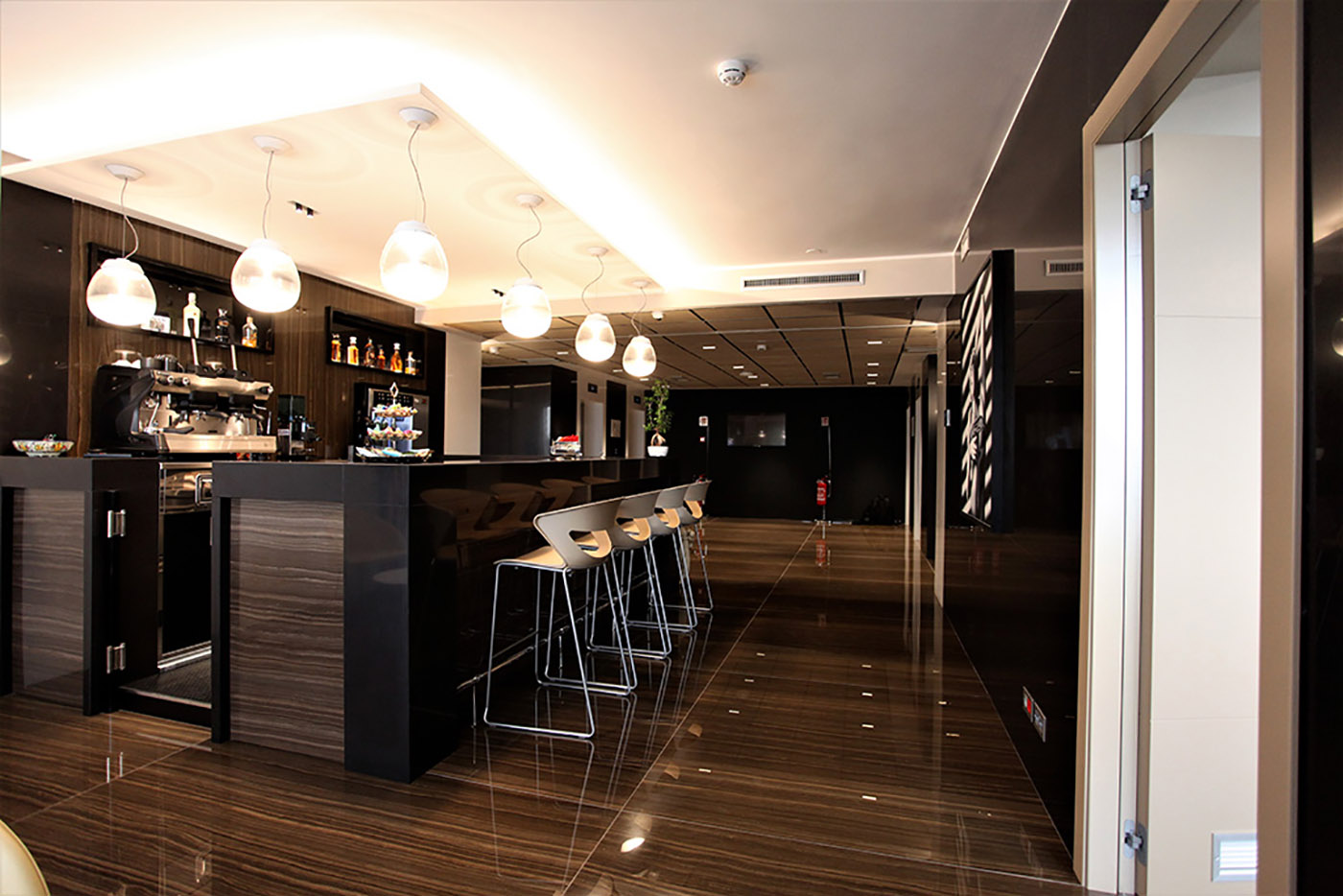 Per valorizzare questi aspetti, nell'ufficio della Direzione Generale sono state posate, come rivestimento, le sofisticate lastre Avenue Amber. Infatti la loro estetica raffinata e contemporanea è in grado di abbinarsi idealmente con ogni tipologia di arredo, favorendo una piacevole atmosfera di comfort e serenità