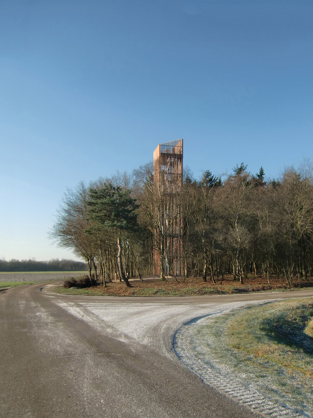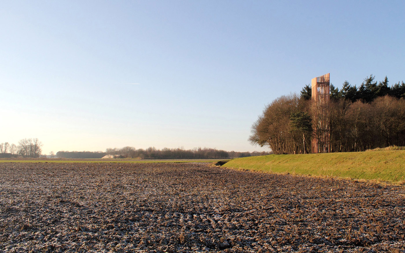 Lo studio Ateliereen Architecten, commissionato dal comune di Dalfsen, in Olanda, progetta una torre di osservazione alta venti metri a margine di una foresta, dal design semplice e sostenibile: una semplice torre dritta rivestita da doghe in legno