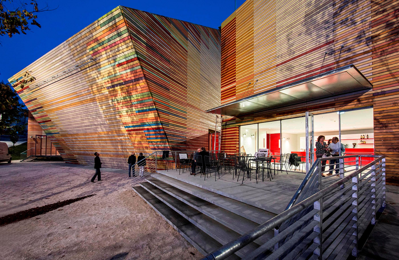 Tutto il ciclo di finitura era stato precedentemente testato dall’Istituto Invalsa di Trento (su espressa richiesta della Provincia) e tutti i risultati comprovavano l’eccellente resistenza dei prodotti Carver. Exterol 050, olio di finitura usato per la realizzazione di questa imponente opera è disponibile in 19 differenti tinte ma, per l’auditorium dell’Aquila, erano state eseguite colorazioni ad hoc su precisa indicazione del progettista.