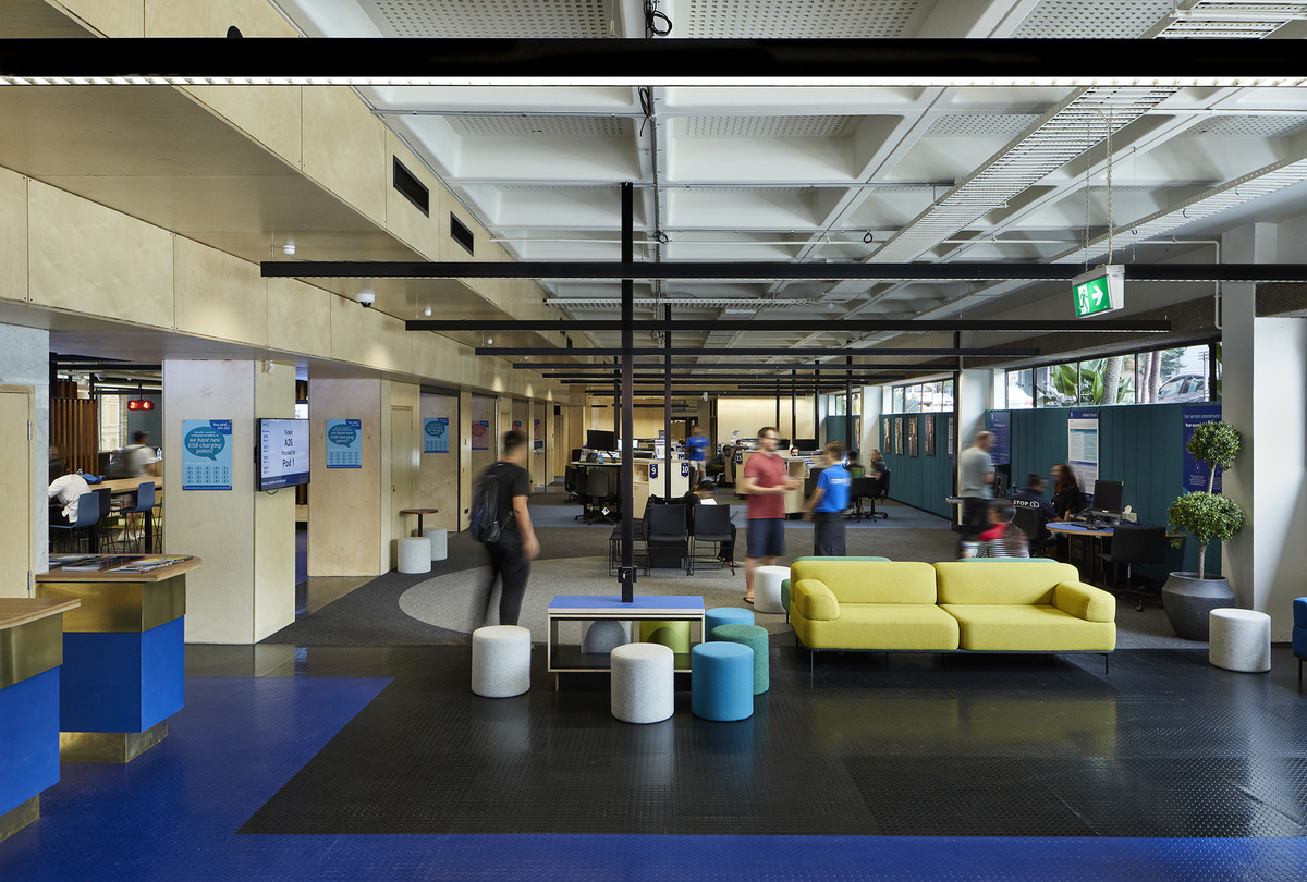 A Melbourne lo studio Six Degrees recupera e ristruttura un vecchio edificio degli anni '70, ricreando al suo interno un ampio e funzionale centro servizi riservato agli studenti delle università, evidenziandone l'integrità architettonica e materiale