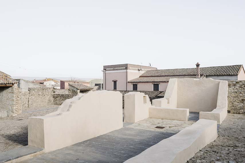 L’architetto Martino Picchedda affronta il progetto di architettura urbana con un approccio sensibile e contemporaneo che trasforma un edificio a corte del XIX secolo in uno spazio pubblico ed espositivo per la cittadinanza. Un lavoro di interpretazione delle tracce storiche come “stratificazioni di senso” che restituisce ai ruderi il ruolo di narratori di ciò che fu. L’opera di ripulitura della struttura diroccata e immersa nella vegetazione inselvatichita, diventa un rituale catartico di riscoperta delle radici del luogo
