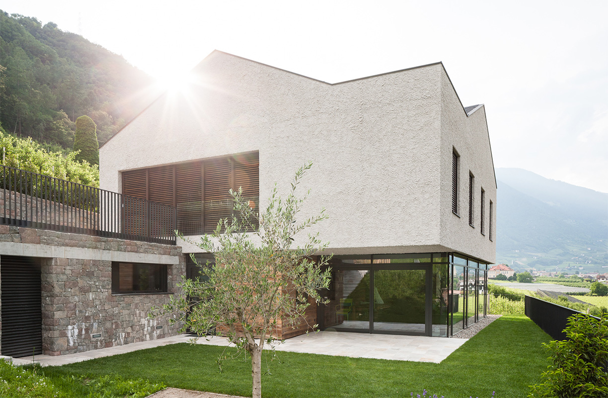 Il progetto di questa villa, realizzato dagli architetti Heinrich Zöschg e Alexander Karnutsch, parte dalla demolizione di un vecchio fienile e dal desiderio del committente di realizzare un'architettura contemporanea con materiali da costruzione naturali e ruvidi, oltre che con il legno. Altro concetto base importante è stato, sicuramente, l'inserimento dell'edificio in un paesaggio culturale e architettonico sensibile con le sue terrazze in pietra naturale