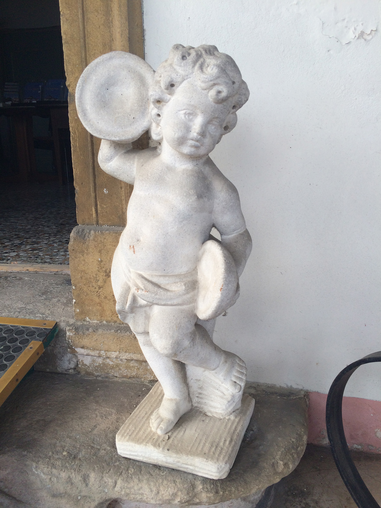Alcune misurazioni con igrometro di profondità evidenziano una grossa presenza di sali particolarmente aggressivi all'interno della muratura: si ipotizza che lo scarico in passato fosse utilizzato per scarti animali che stanziandosi e decomponendosi hanno portato alla creazione di una notevole quantità di sali nitrati