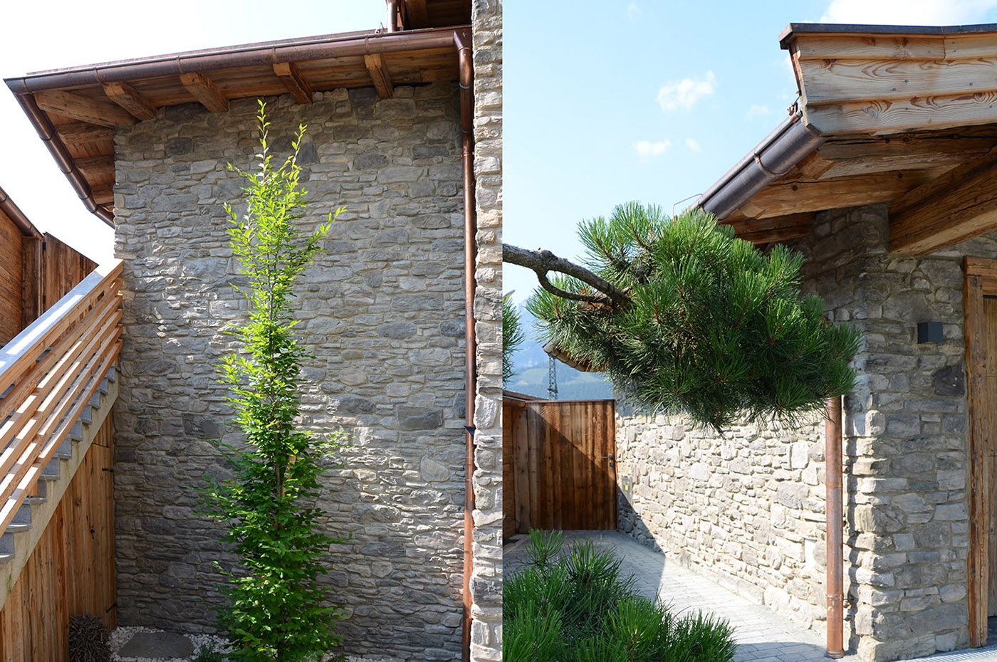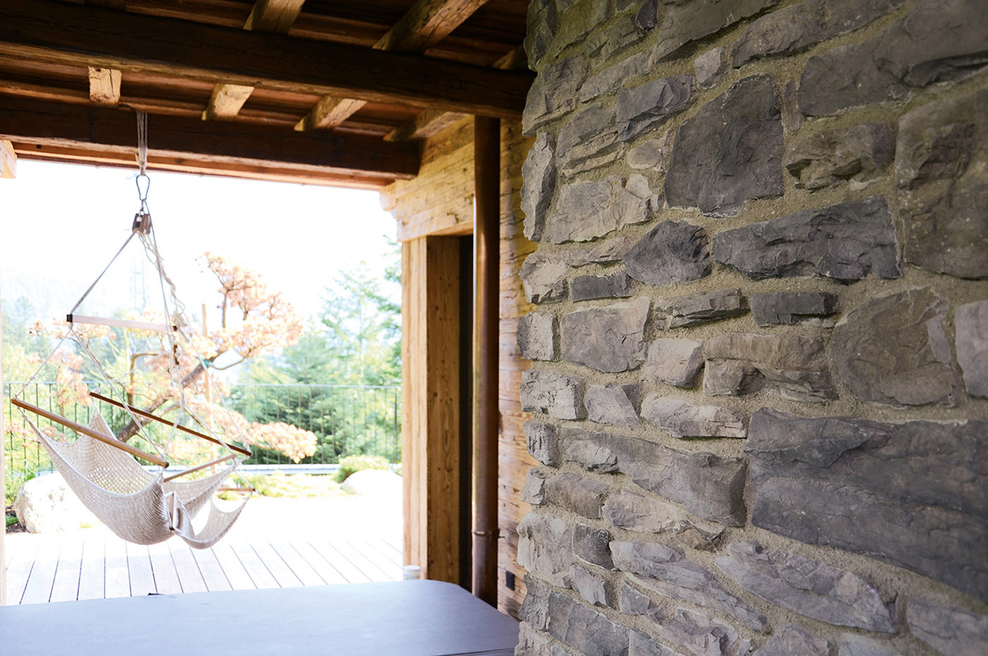 La pietra ricostruita Geopietra® insieme ad essenze come il pino cembro, il larice e l’abete costituisce la quinta ideale per una vita sana a contatto con la Natura. CASCATA di Geopietra® è una pietra spaccata che presenta una composizione variegata di forme e il carattere unico della muratura spontanea, selezionata nei toni caldi della terra alpina è in grado di esprime il forte radicamento geografico e culturale al luogo d’origine