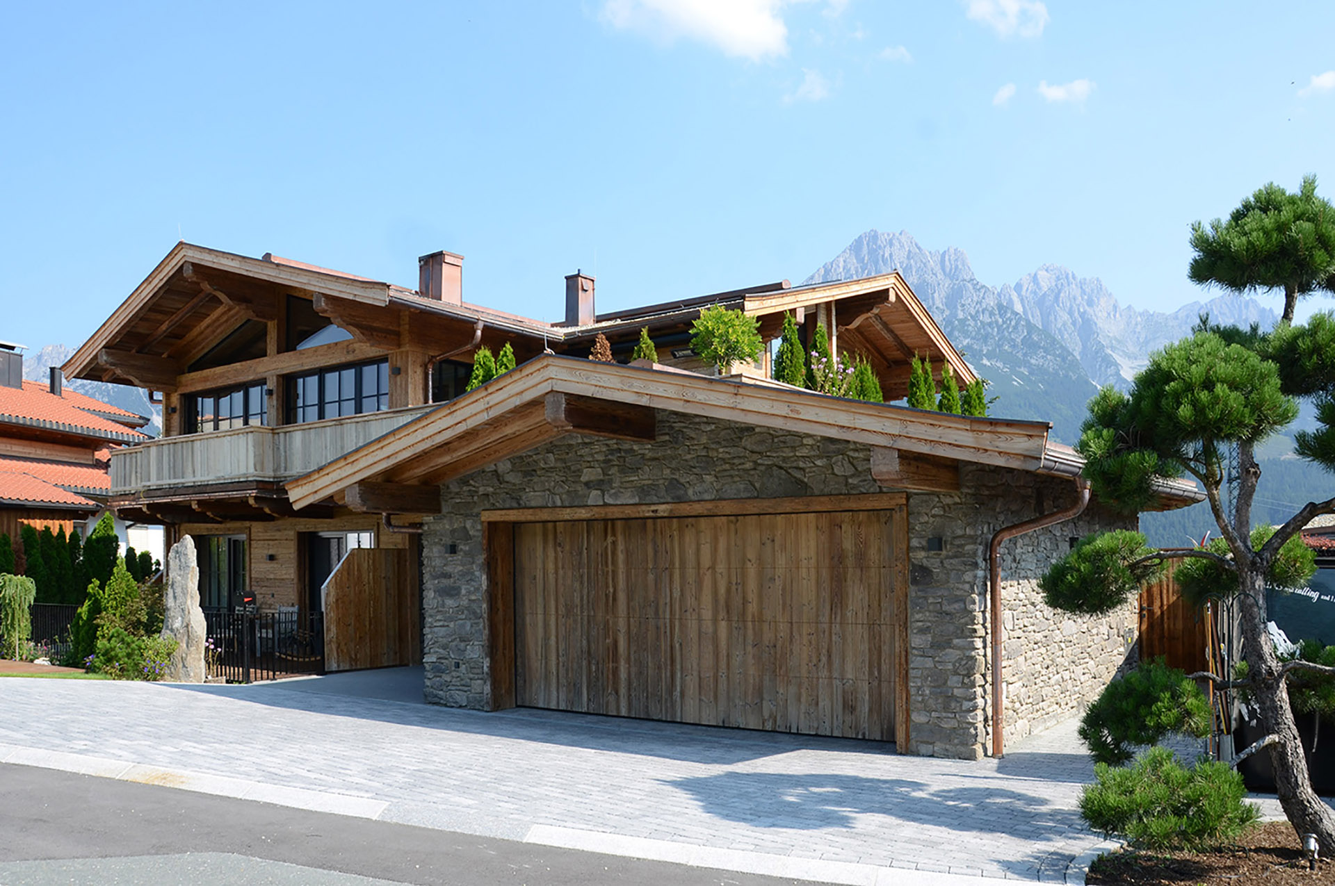La villa tirolese è immersa in una natura incontaminata, disposta su due livelli piano strada, nasconde il terzo livello nel declivio della collina per ridurre al minimo l’impatto della costruzione sul paesaggio circostante. Lo sbalzo profondo delle terrazze offre riparo ai comodi spazi esterni, affacciati sul giardino e sul bosco di fronte all’imponente sfondo del Wilder Kaiser