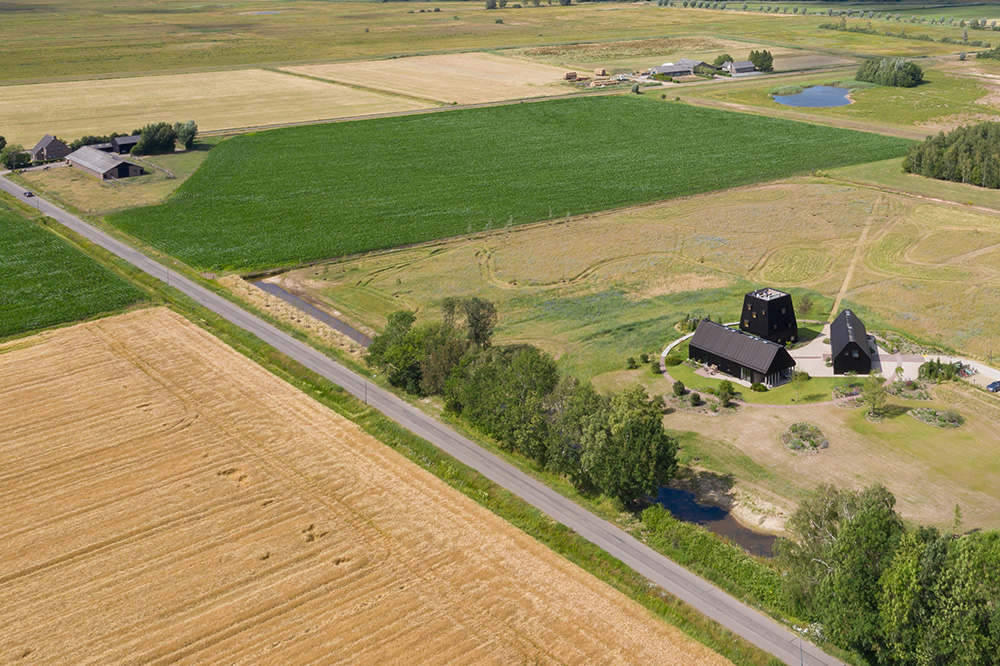 La villa, uno dei progetti di architettura dello studio Mecanoo Architecten si distingue per la sua distribuzione in tre volumi distinti, che evocano l'atmosfera di un piccolo villaggio. Due di questi volumi assumono la forma dei tradizionali fienili a capanna, collegati con l'esterno, mentre il terzo, più alto, offre una vista panoramica sul paesaggio circostante, contrastando con gli edifici adiacenti di minor altezza.