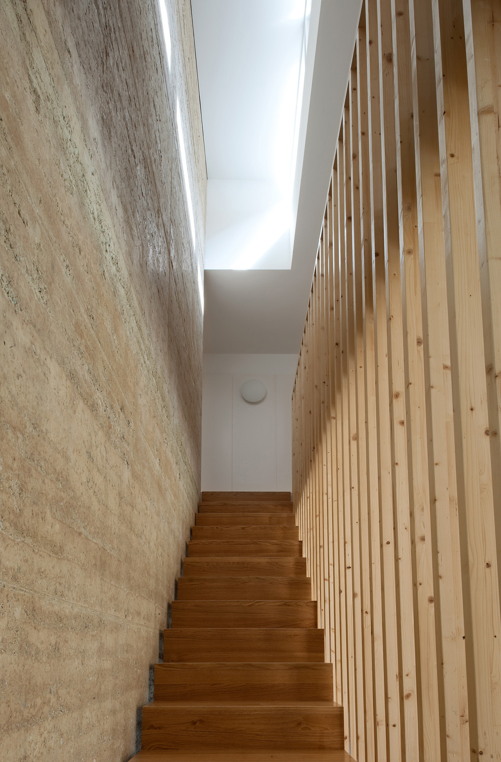 Oltre alle finestre in facciata, un lucernario centrale assicura che ogni camera goda di illuminazione naturale e ventilazione. Infine, dall'apertura manuale di una finestra, si raffredda l'aria che temperata al livello inferiore attraversa la casa e il lucernario agisce come un sistema di raffreddamento naturale