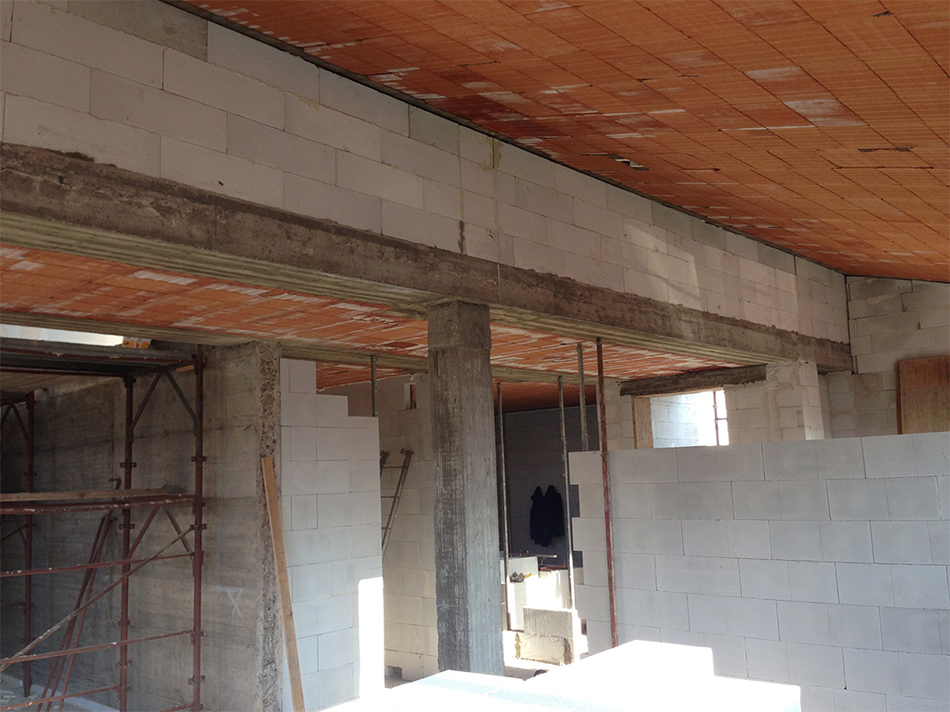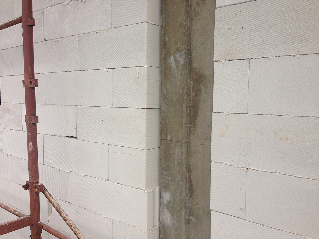 La struttura di tamponamento è stata realizzata tramite l'impiego di blocchi in calcestruzzo aerato autoclavato Ytong Thermo 450, spessore 36 cm, accoppiato al cappotto termico in EPS, spessore 6 cm. La scelta di Ytong Thermo nasce dal fatto che, questi blocchi, hanno ottime resistenze meccaniche e si prestano bene ad una soluzione con cappotto. Inoltre, il blocco Thermo garantisce maggiore leggerezza e migliori prestazioni termiche, a parità di spessori, rispetto ad una soluzione tradizionale in laterizio+cappotto.