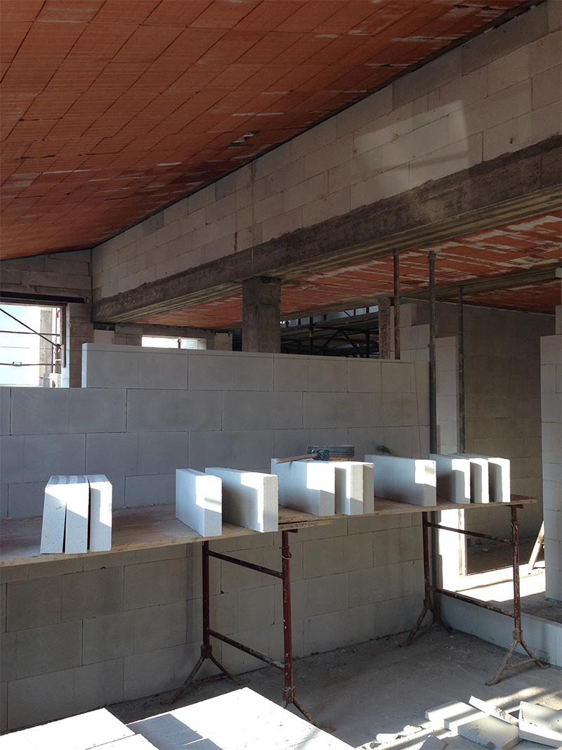 Tutti i tavolati interni sono stati anch'essi realizzati mediante l'utilizzo di blocchi sottili in calcestruzzo aerato autoclavato Ytong, spessore 10/12 cm, con lo scopo di garantire un ottimo confort acustico interno ed allo stesso tempo garantire anche una certa "autonomia termica" per i singoli locali abitabili: inoltre la facilità di realizzazione delle tracce per la posa di tutta l'impiantistica e l'assenza di scarto di lavorazione ha permesso di dimezzare costi e tempistiche.