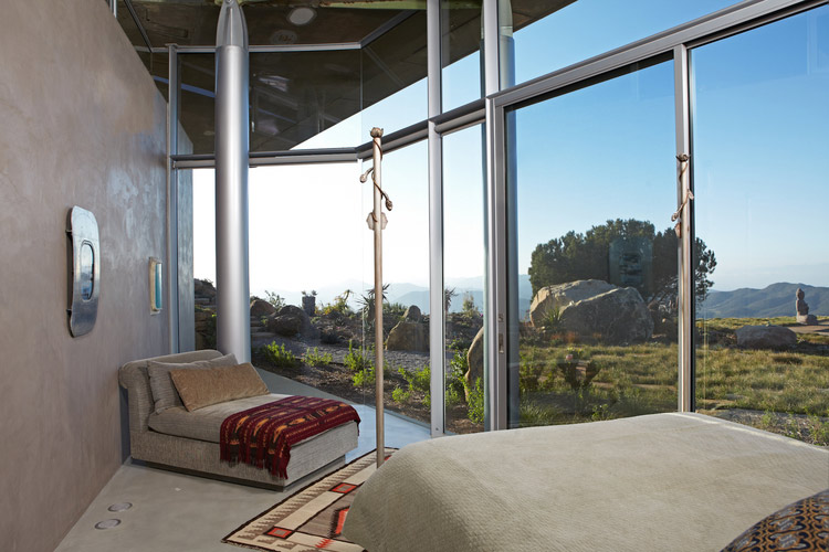 La committente della Wing House chiedeva allo studio David Hertz Architects Inc FAIA di realizzare un edificio dalle forme curve che richiamassero la femminilità. Un altro elemento costitutivo del progetto è sicuramente la location: una topografia unica con vista panoramica che abbraccia le vicine montagne, una valle e, in lontananza, l’Oceano Pacifico costellato da alcune isole. David Hertz immagina un’architettura che non ostruisse la vista, un tetto curvo galleggiante che accarezzasse il territorio