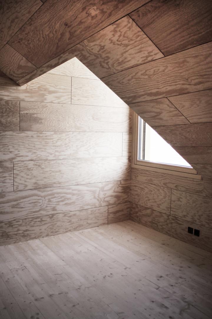 La fondazione e il basamento dell'edificio esistente sono stati mantenuti e completati da una costruzione leggera, di legno, prefabbricata a due piani