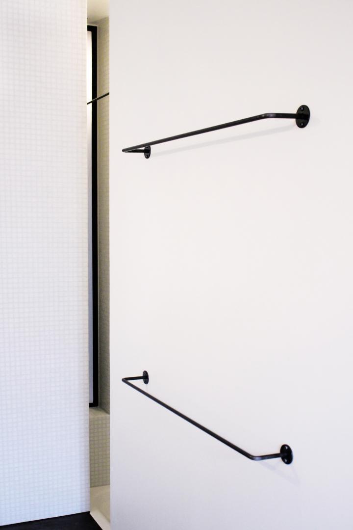 La cucina macchiata di nero è stata fatta dello stesso legno utilizzando un sofisticato metodo di decapaggio ed è stato progettato, come tutti i mobili e le porte, appositamente per la casa