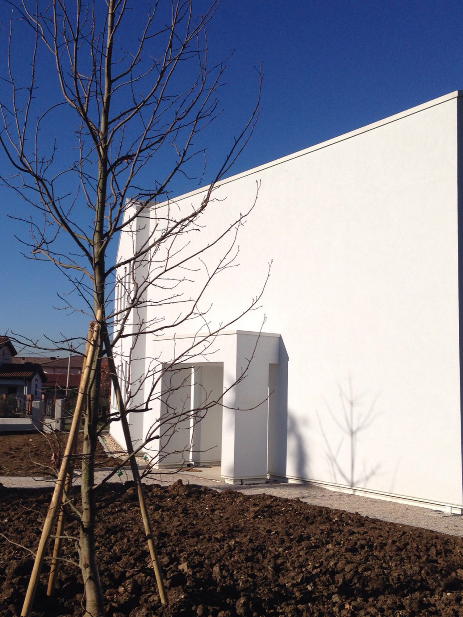 Una casa minimal, di colore bianco in esterno come in interno, semplice nella forma, si contrappone alla sua complessità impiantistica. Volumi semplici che si incastrano tra loro creando movimento e chiaroscuri