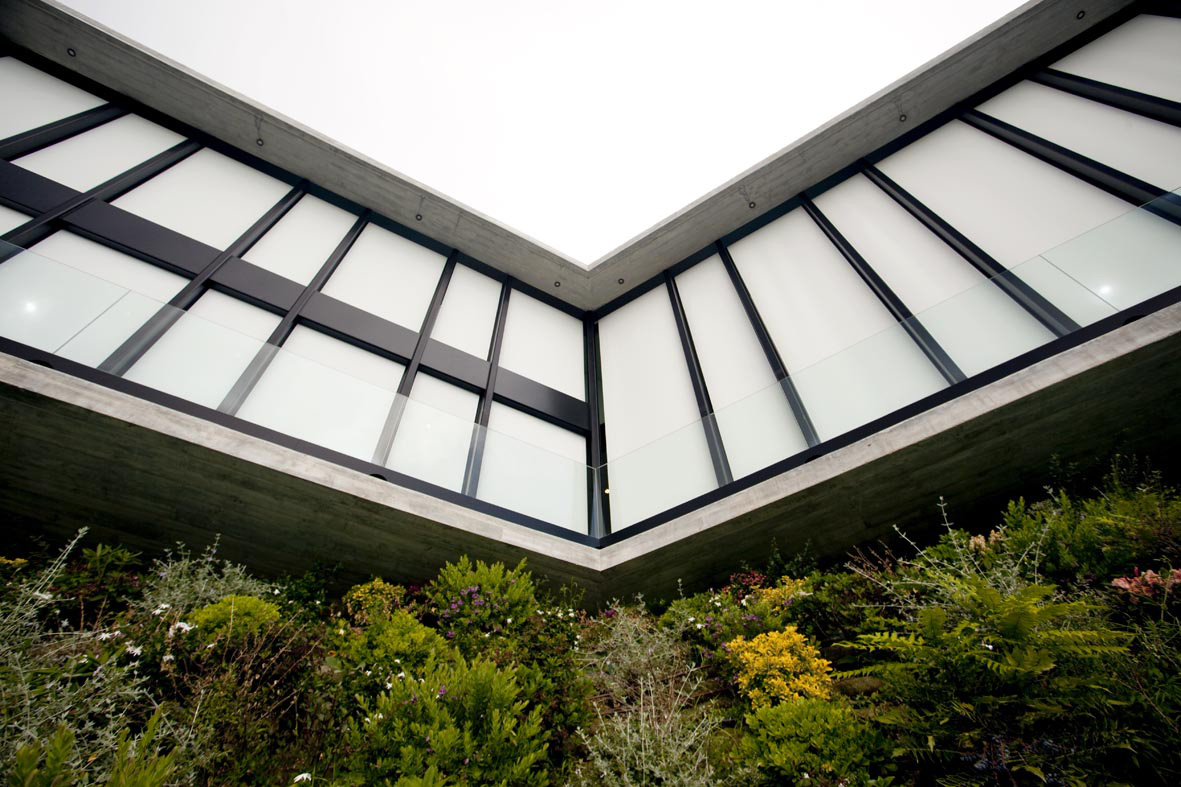 La forma unica nasce dalla necessità dei progettisti dello studio Caraval & Solà-Morales di integrare un’architettura contemporanea, con l’intorno naturale, tra cui la vista sul mare, la montagna e un pino di dimensioni notevoli. La forma pertanto non è a priori, se non lo sforzo di dare una risposta unitaria a tutti gli elementi in gioco che l’hanno condizionata