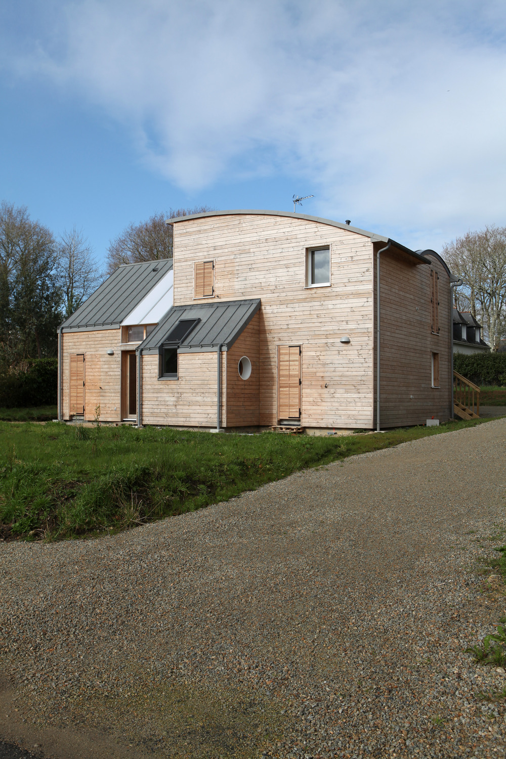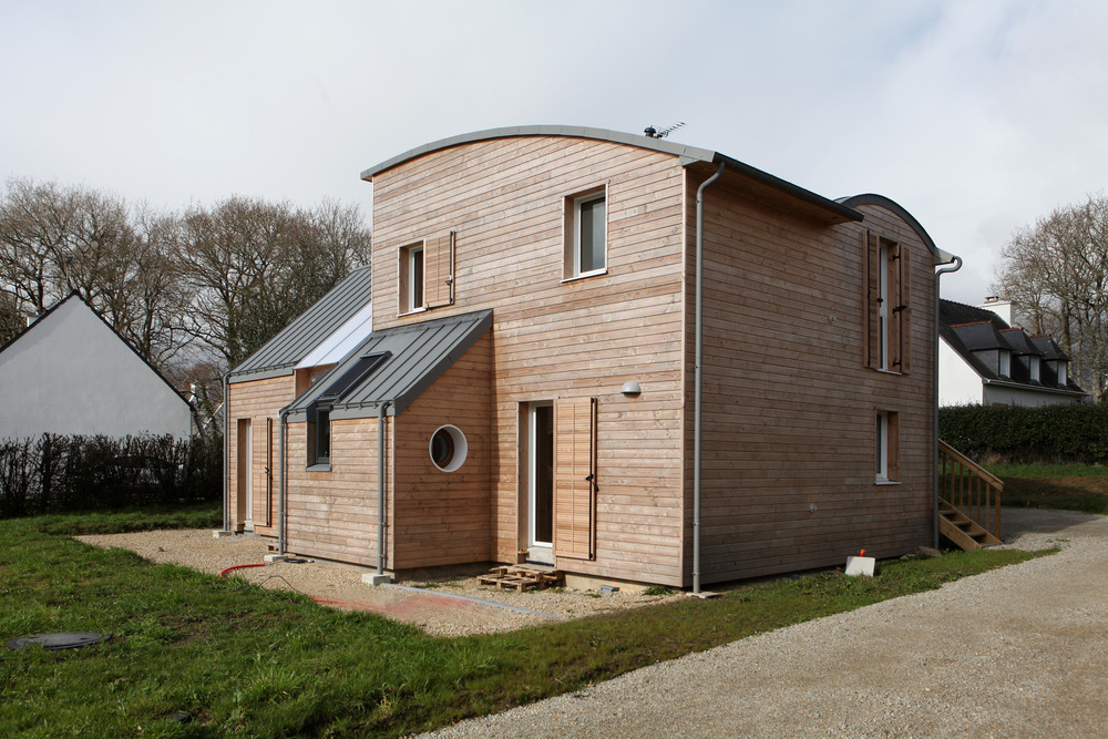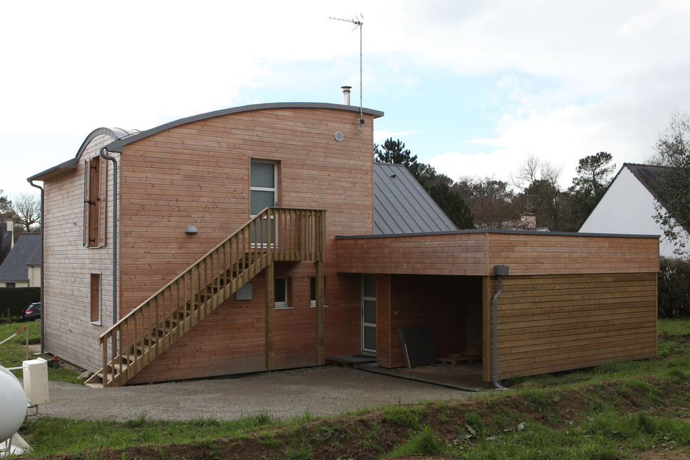 L'obiettivo principale di questo progetto è stato quello di costruire una casa adatta al clima marino della Bretagna in conformità con la normativa energetica francese RT 2012 usando materiali naturali e includendo elementi come un conservatorio, una stufa a legna e un bidirezionale sistema di ventilazione centrale dell'aria. Era attraverso la ricerca del web per informazioni sugli edifici passivi con tetti ad arco che il project manager ha scelto un architetto che mira anche a creare condizioni di vita sane in un ambiente naturale