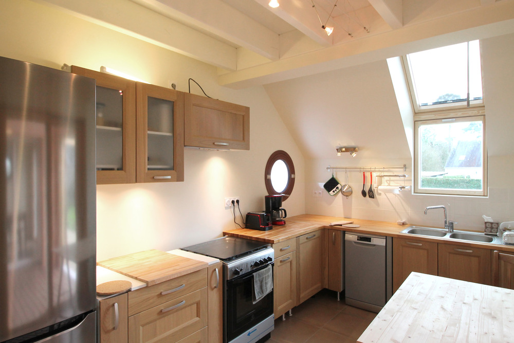 La casa di Riec sur Belon, cittadina nota per le sue ottime ostriche, è composta da tre sezioni distinte. L'autoportante è una struttura in legno ricoperta di rivestimento a slitta a nord, zinco antracite ad ovest e un tetto in zinco a basso profilo con cuciture in piedi. La seconda sezione è una sala d'ingresso con un tetto a doppio tetto che porta nello spazio principale di vita. Il piano terra della sezione più grande comprende una scala, un ripostiglio, una camera da letto con bagno e una cucina che ha accesso al conservatorio. Al piano superiore, sotto un tetto arcuato, si tratta di uno studio con vista sul giardino d'inverno e sulla strada e su un piccolo appartamento